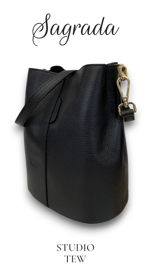 Black Leather Bucket Bag - Sagrada