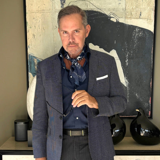 Navy Heritage Paisley Silk Scarf - 53cm Hand-Rolled Unisex Bandana