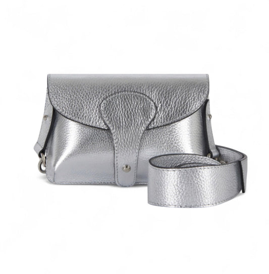 Light Grey Leather Compact Crossbody Bag - Vogue