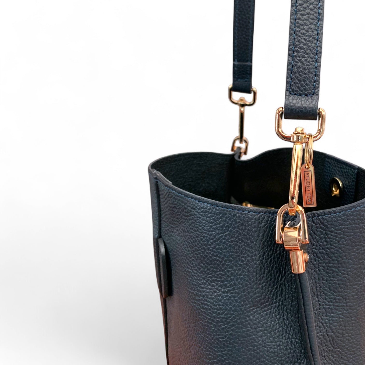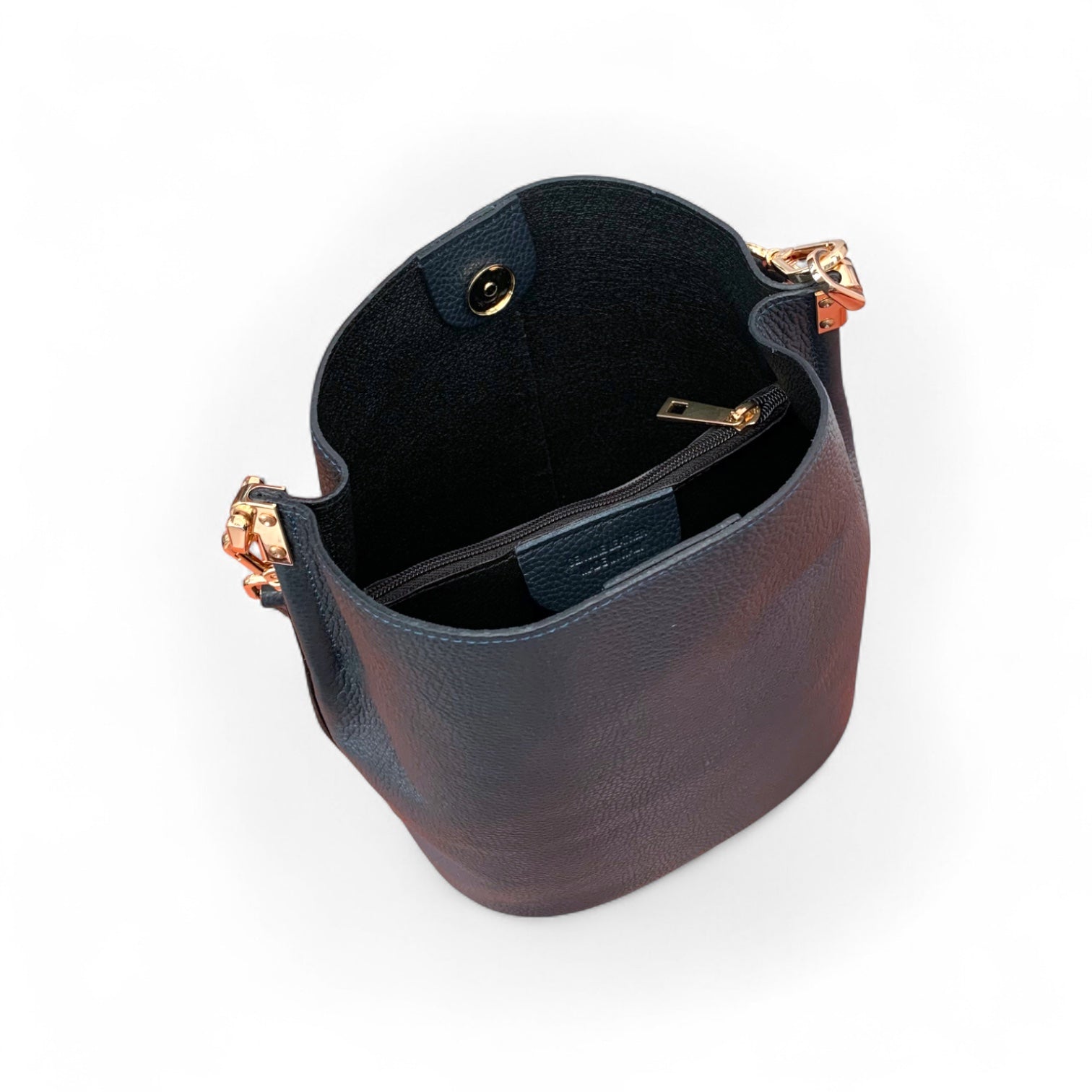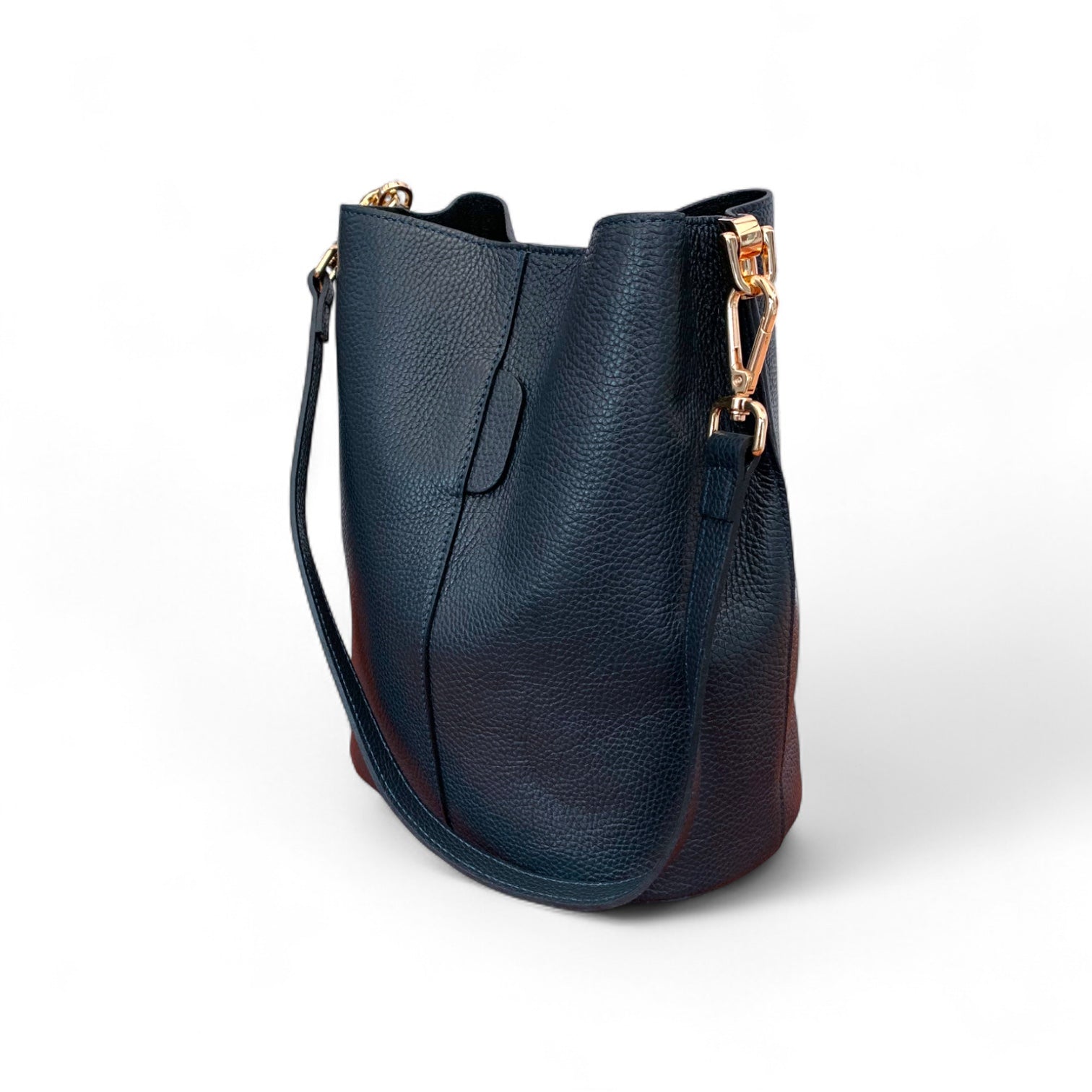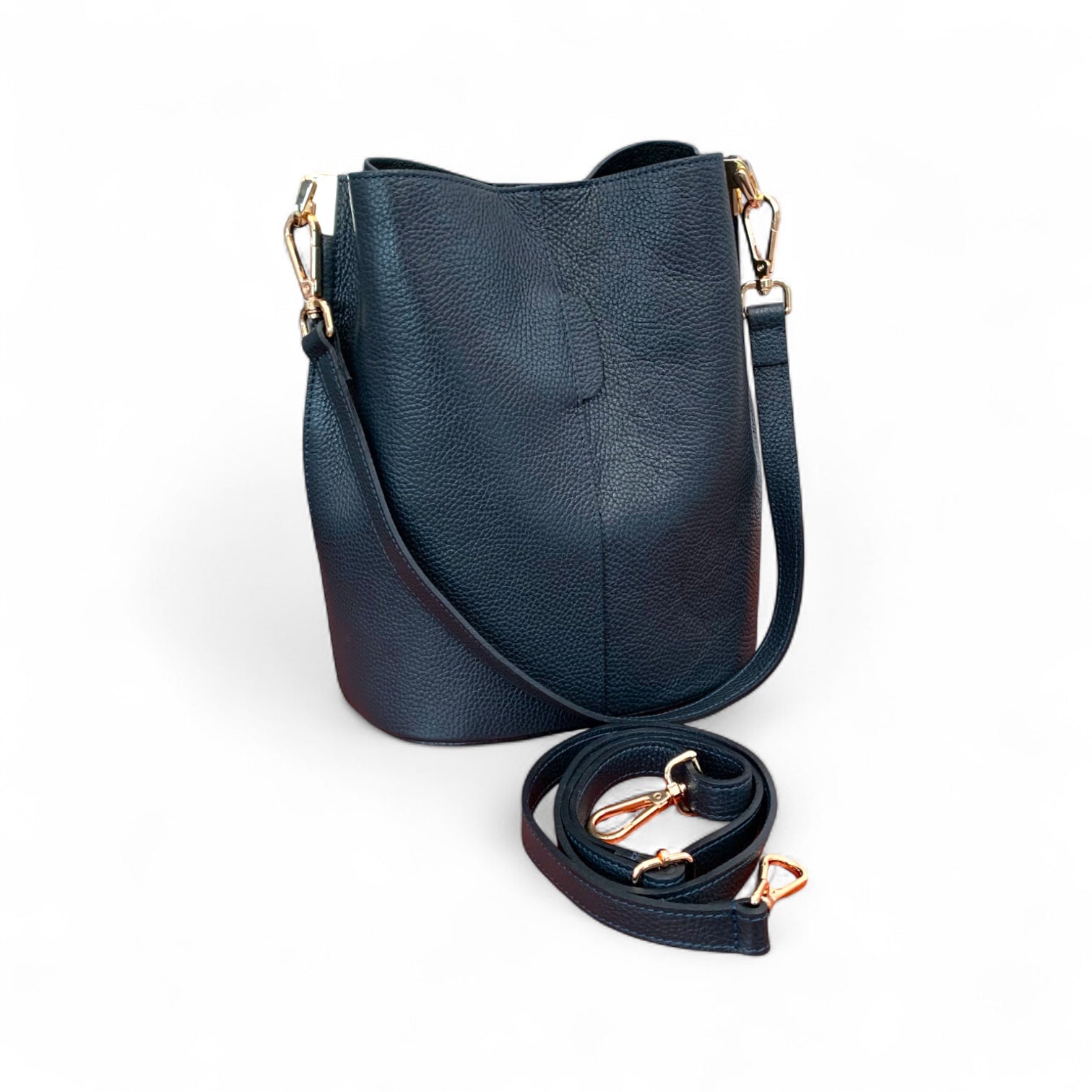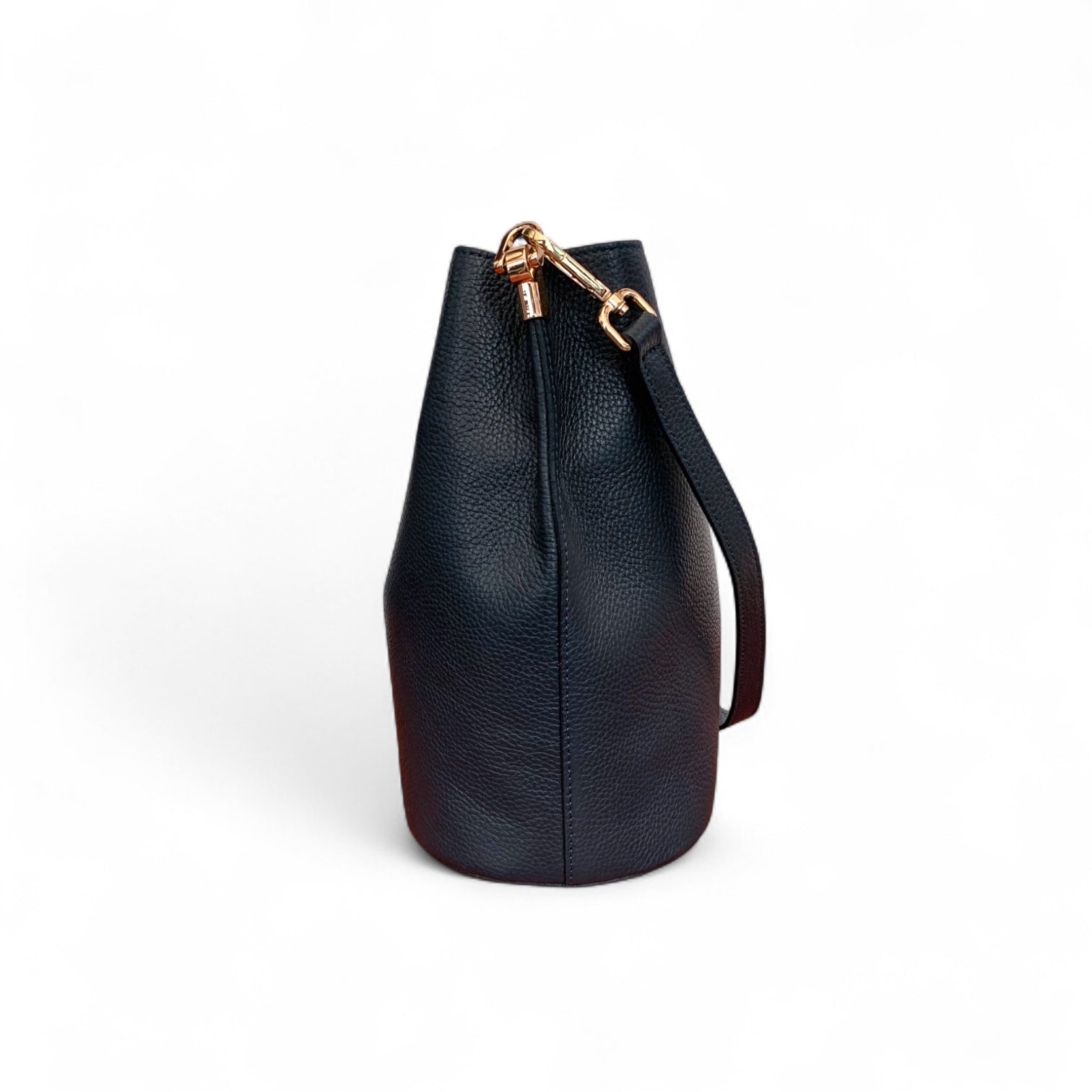This spacious bucket bag is made of quality Italian leather. Its size allows for ample storage space, perfect for daily use - its a stylish & functional 'must have' piece!