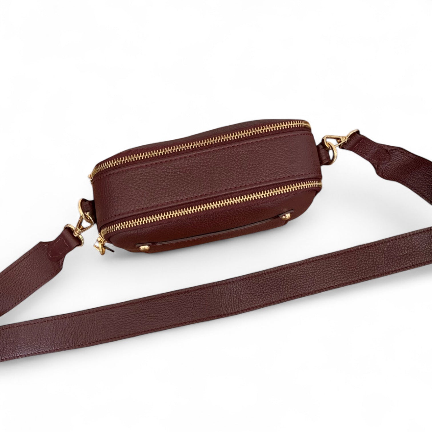 This luxe leather bag is the perfect accessory for any occasion. Featuring a timeless design and double zip compartment for easy organization, its modern look and effortless style will give you confidence wherever you go!