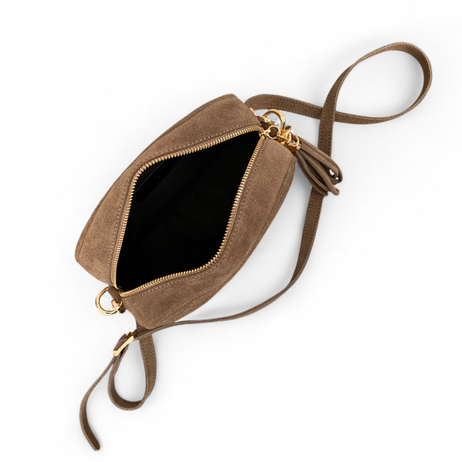- Detachable & adjustable strap in matching suede.