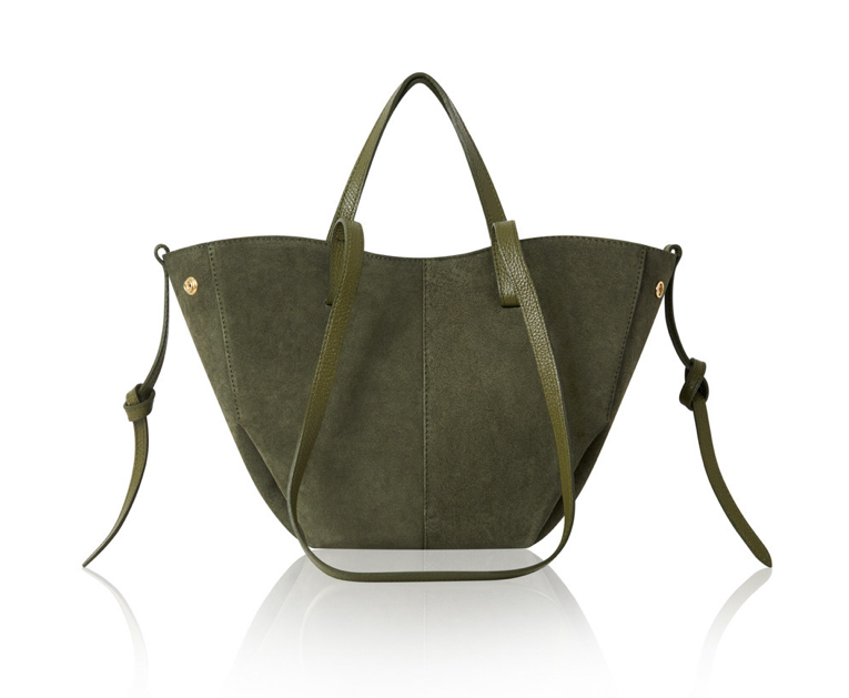 Made from premium Italian suede leather, this bag exudes timeless sophistication and versatility. Whether carried by hand or on the shoulder, its stylish side snap buttons allow for two different looks.
