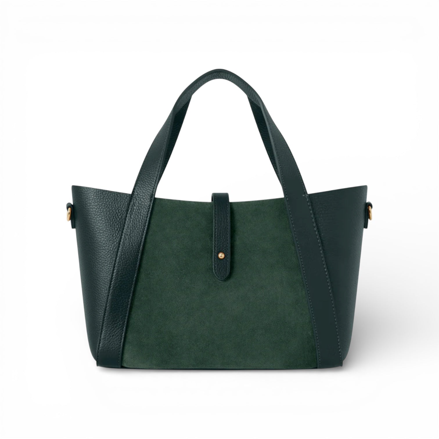 Wide, comfortable handles make it easy to carry, while subtle gold-tone hardware adds a touch of luxury without fuss. A simple snap-button closure keeps essentials secure, and the interior features a removable zippered pouch for organised storage.
