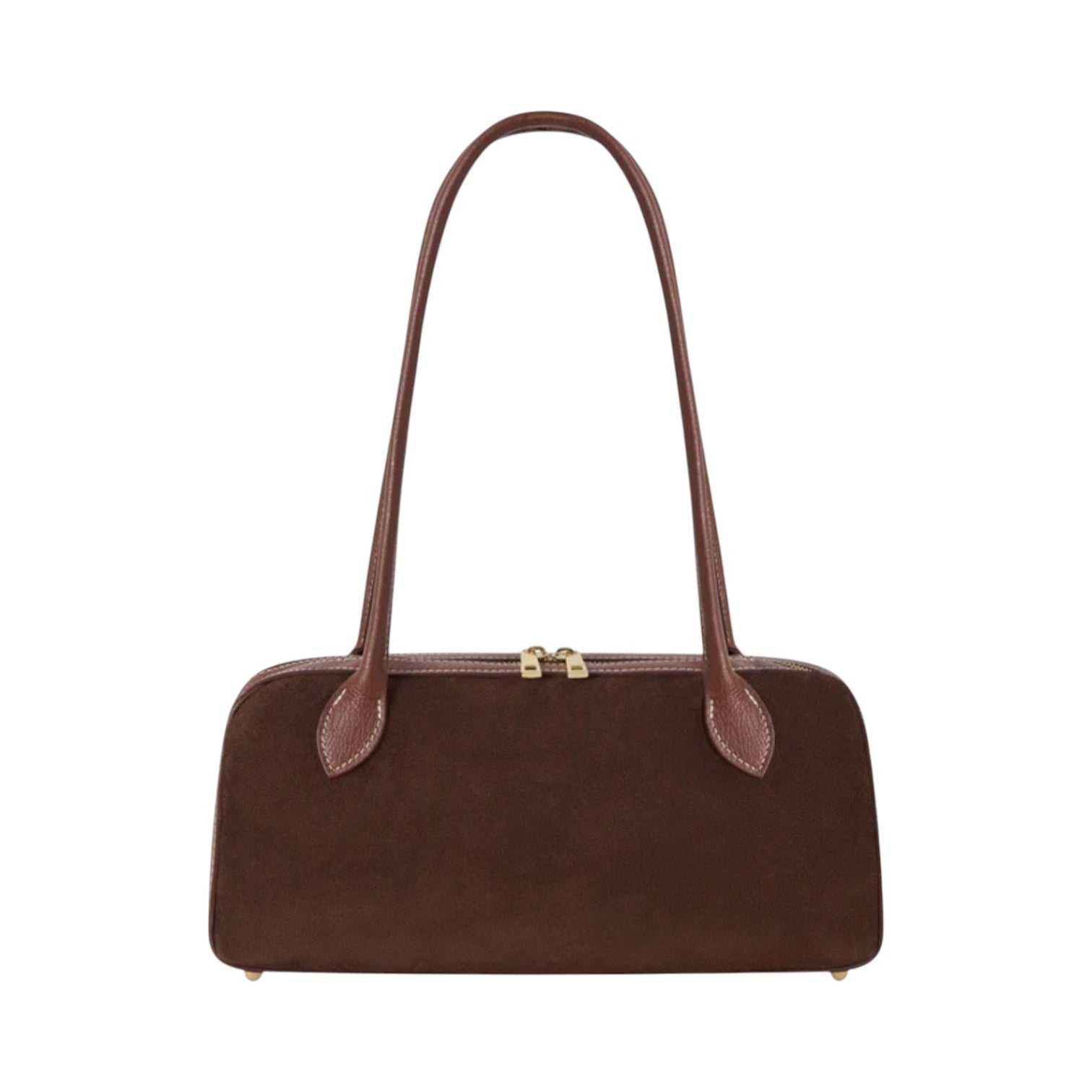 The Anita bag is a premium suede shoulder bag with a relaxed rectangular shape inspired by vintage bowling styles. It's spacious enough for daily essentials and pairs easily with any outfit. Made from quality materials, it's a versatile bag that works season after season.