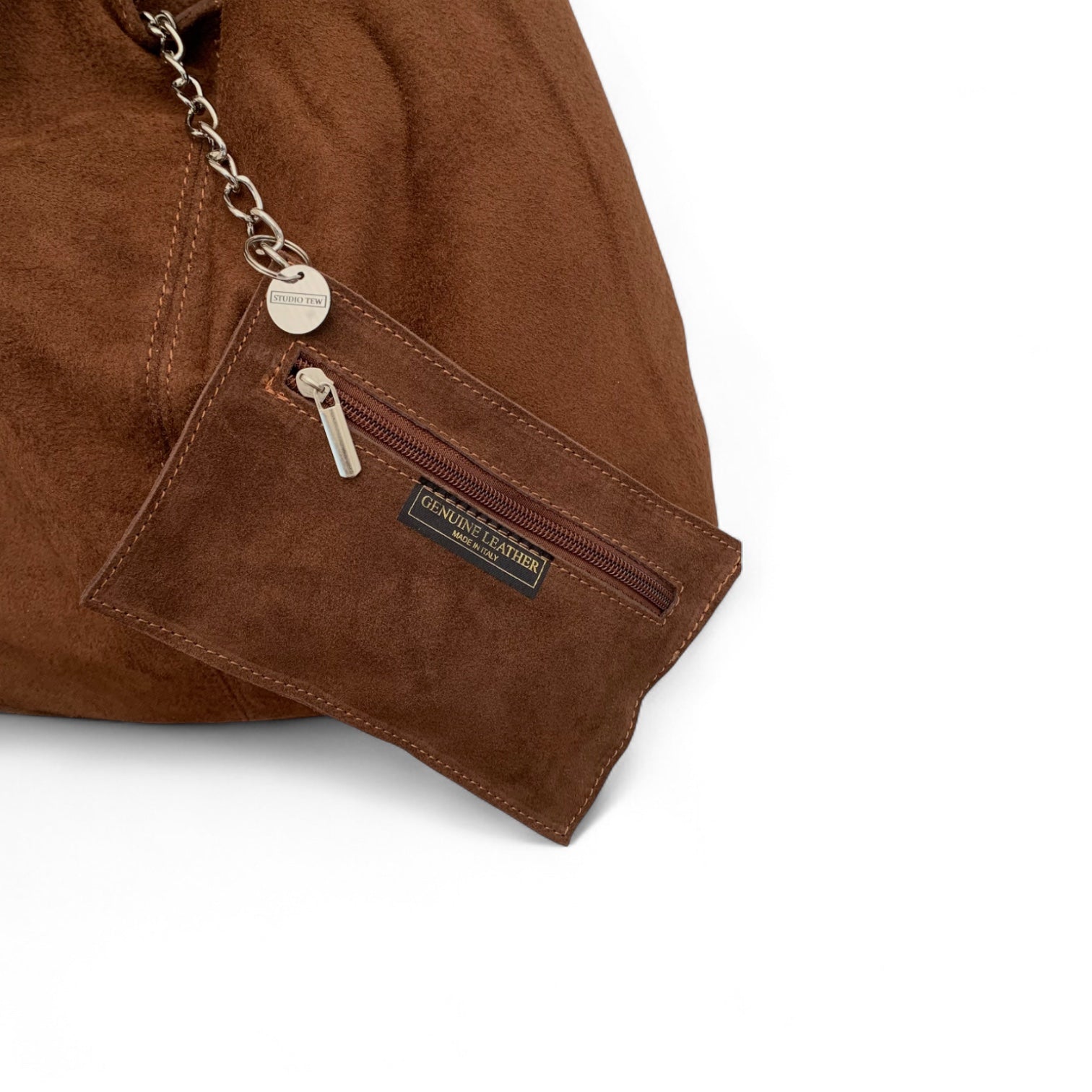 - Each bag comes with a zipped purse in matching suede, attached via a chain.