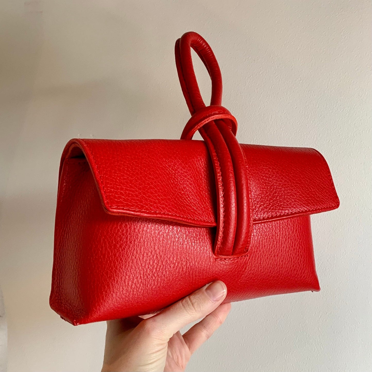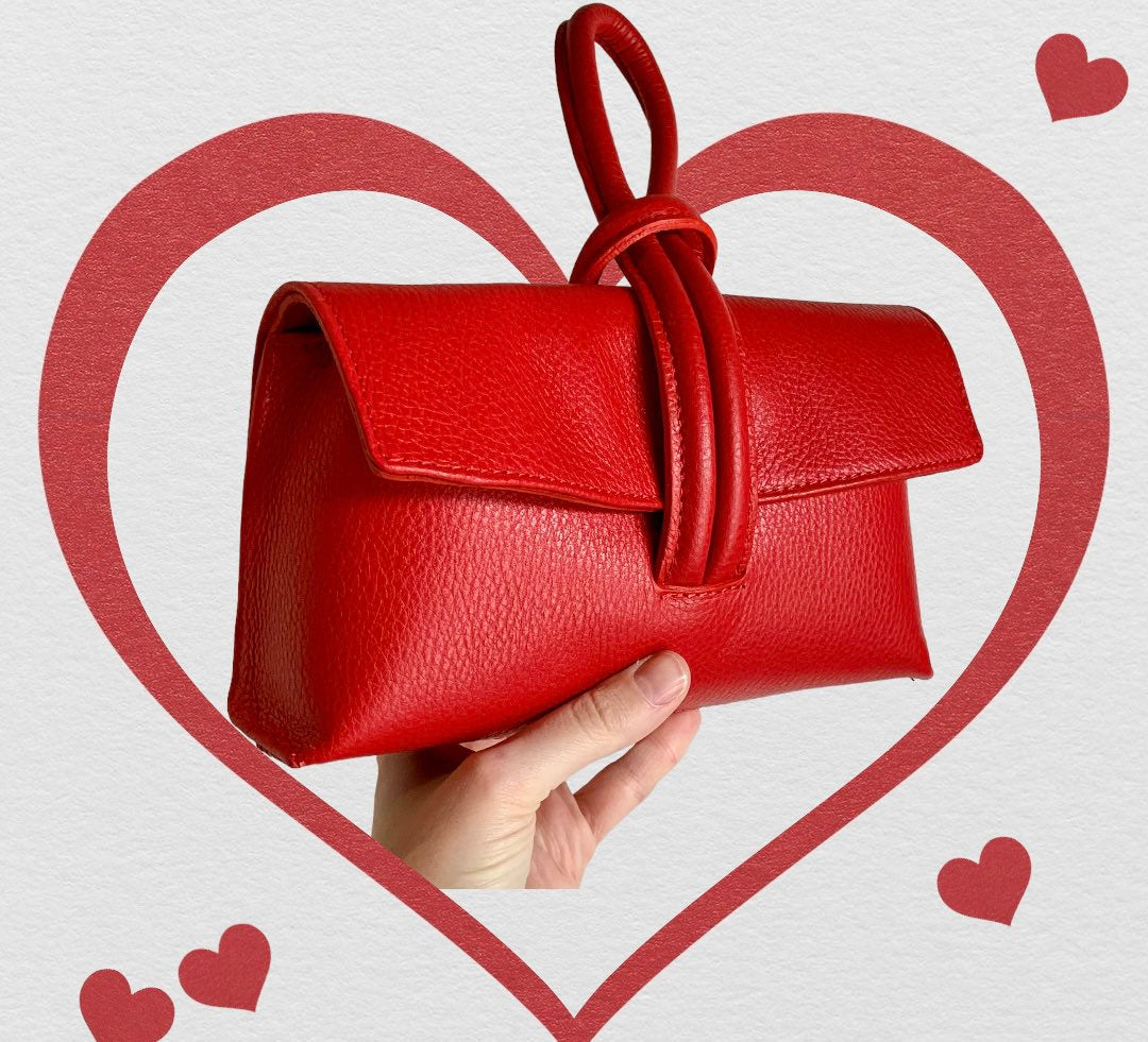 Red Leather Loop Handle Bag - Claris