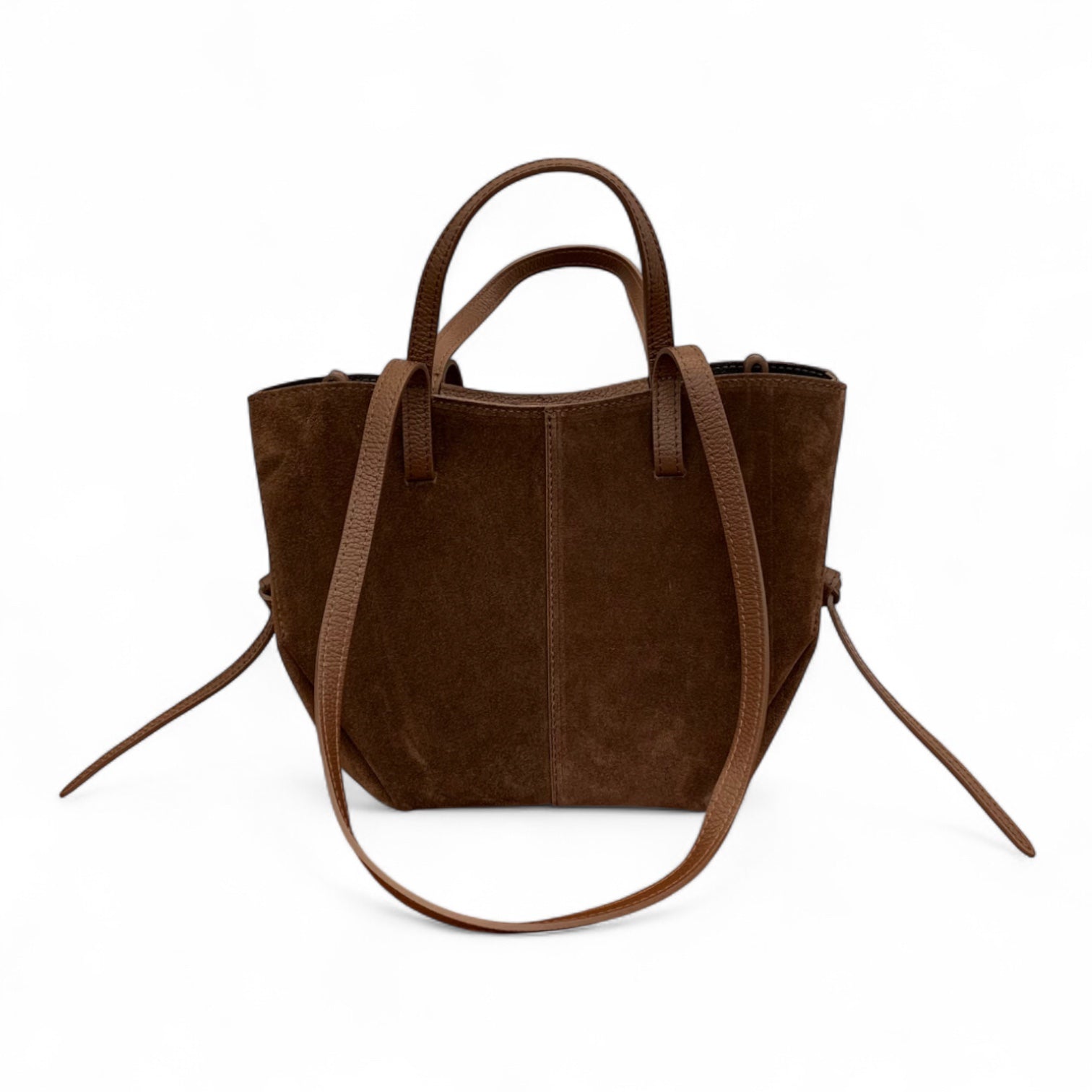 Made from premium Italian suede leather, this bag exudes timeless sophistication and versatility. Whether carried by hand or on the shoulder, its stylish side snap buttons allow for two different looks.