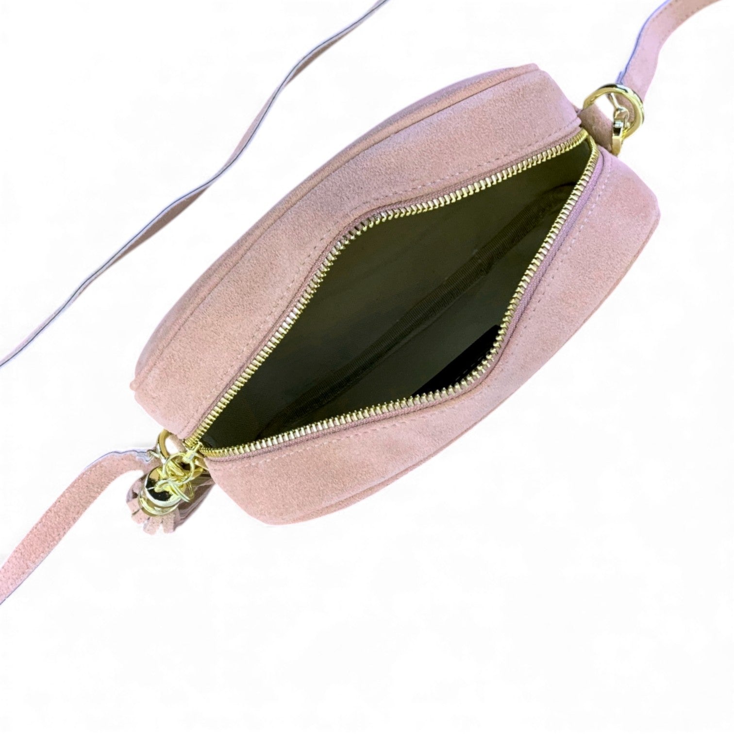 - Detachable & adjustable strap in matching suede.