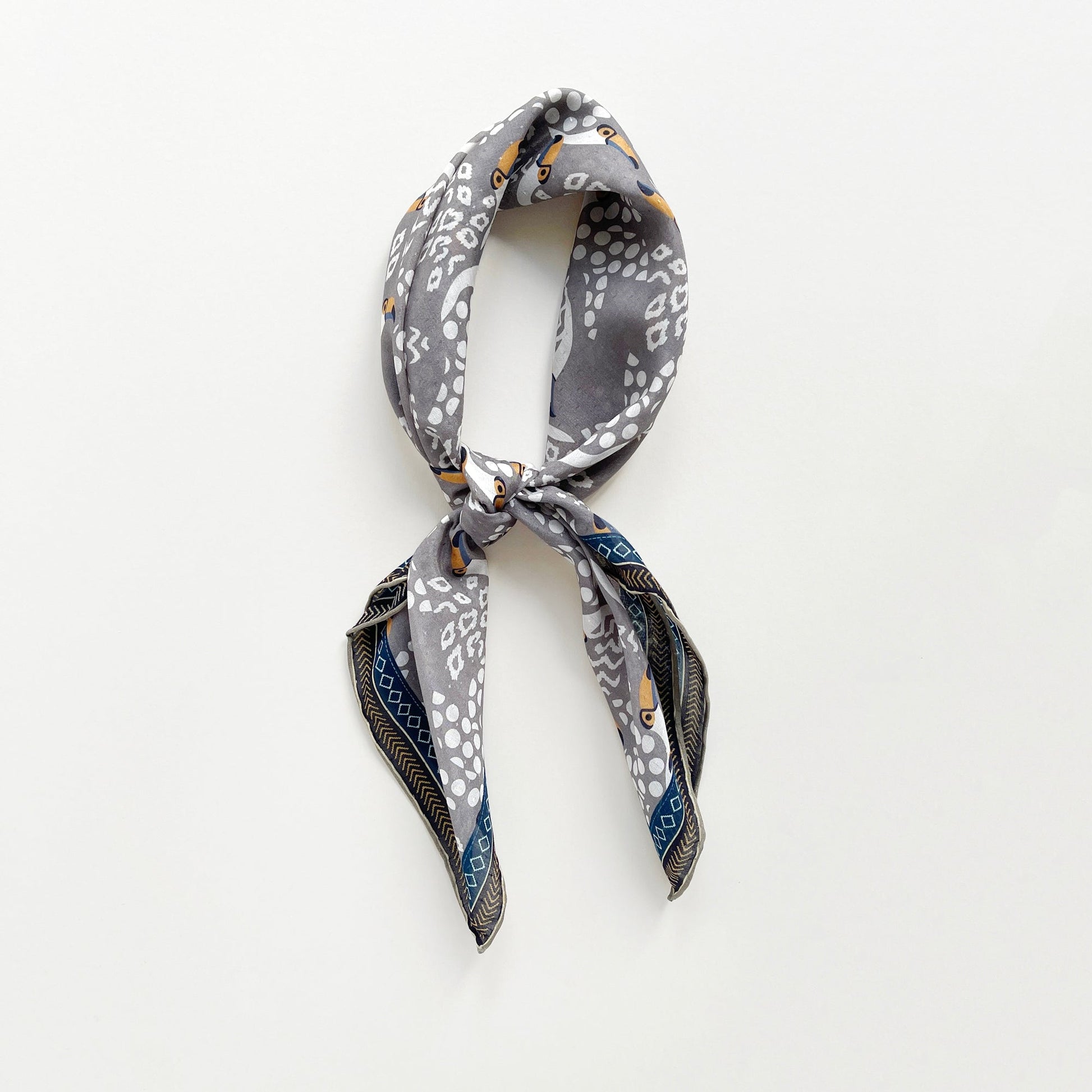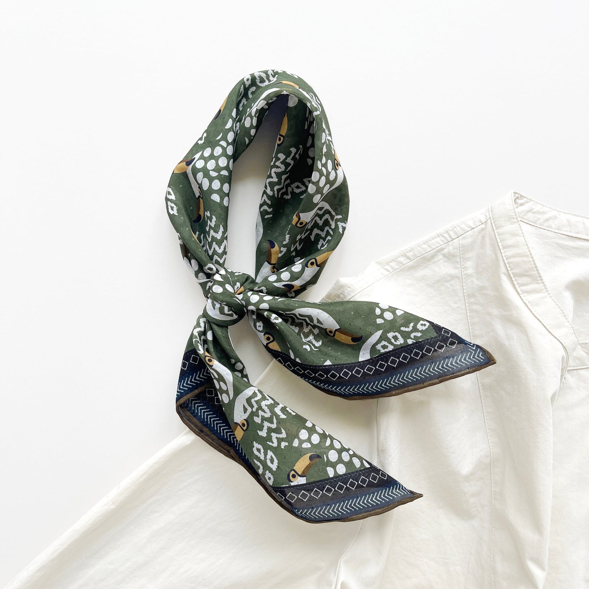 Amazon Toucan Organic Cotton-Silk Scarf - 65cm Hand-Rolled Unisex Square Bandana
