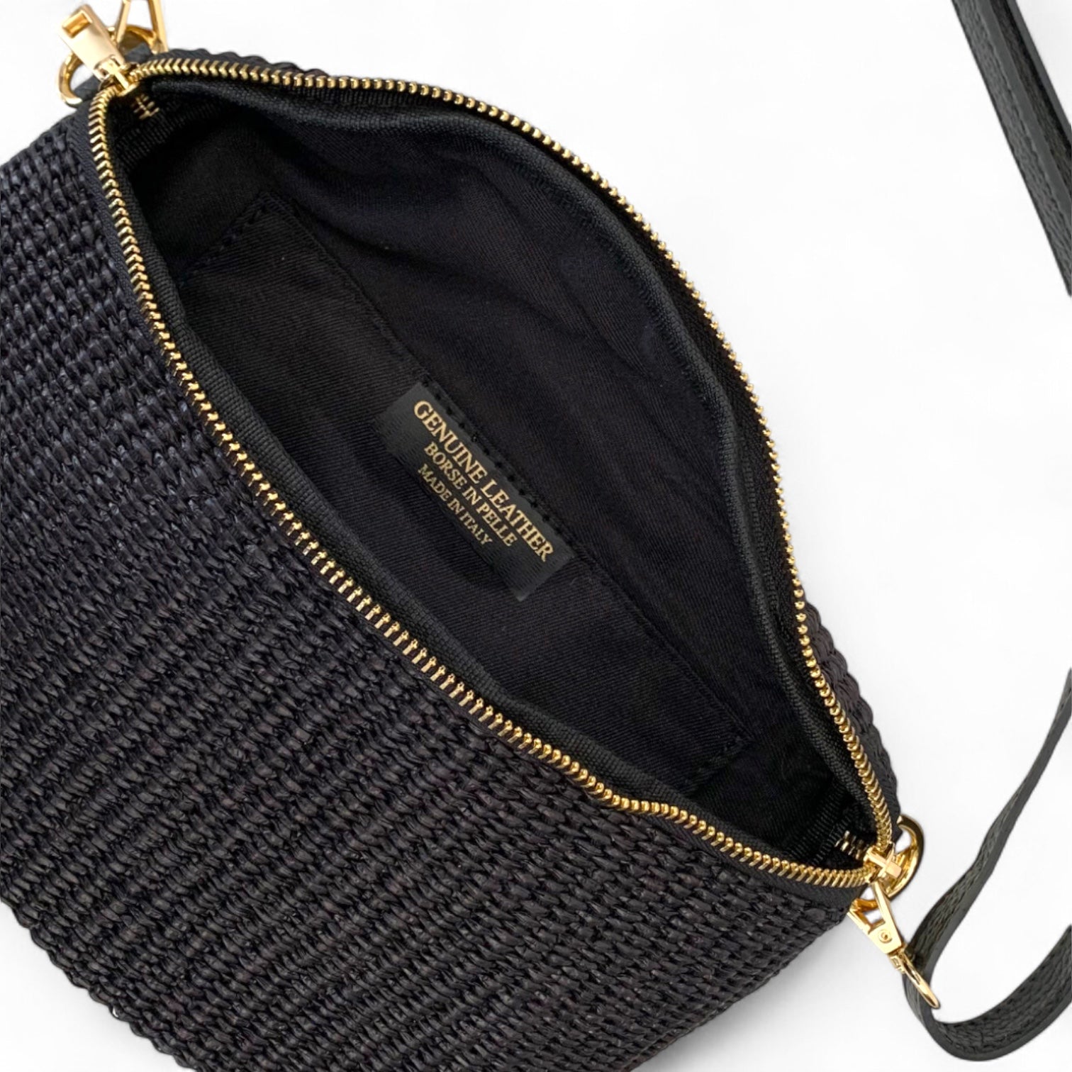 Get ready to make a statement this season with our must-have raffia bum bag! Available in a variety of vibrant colors and featuring a stylish leather strap, this bag is the perfect accessory for any beach vacation or summer outing. Don't miss out on this holiday essential!