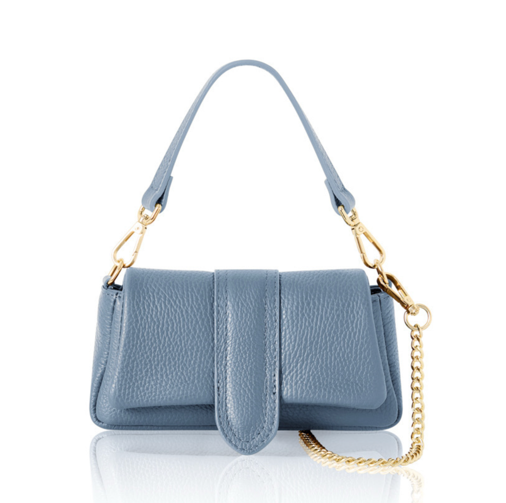 Crafted from pebbled Italian leather, the Hilda Bag offers versatile elegance. Remove the straps to transform it effortlessly into a chic clutch, perfect for any event. Available in a range of sophisticated colours, this stylish bag blends timeless design with practical functionality.