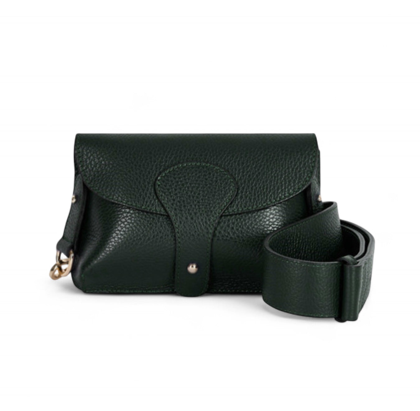 Dark Green Leather Compact Crossbody Bag - Vogue