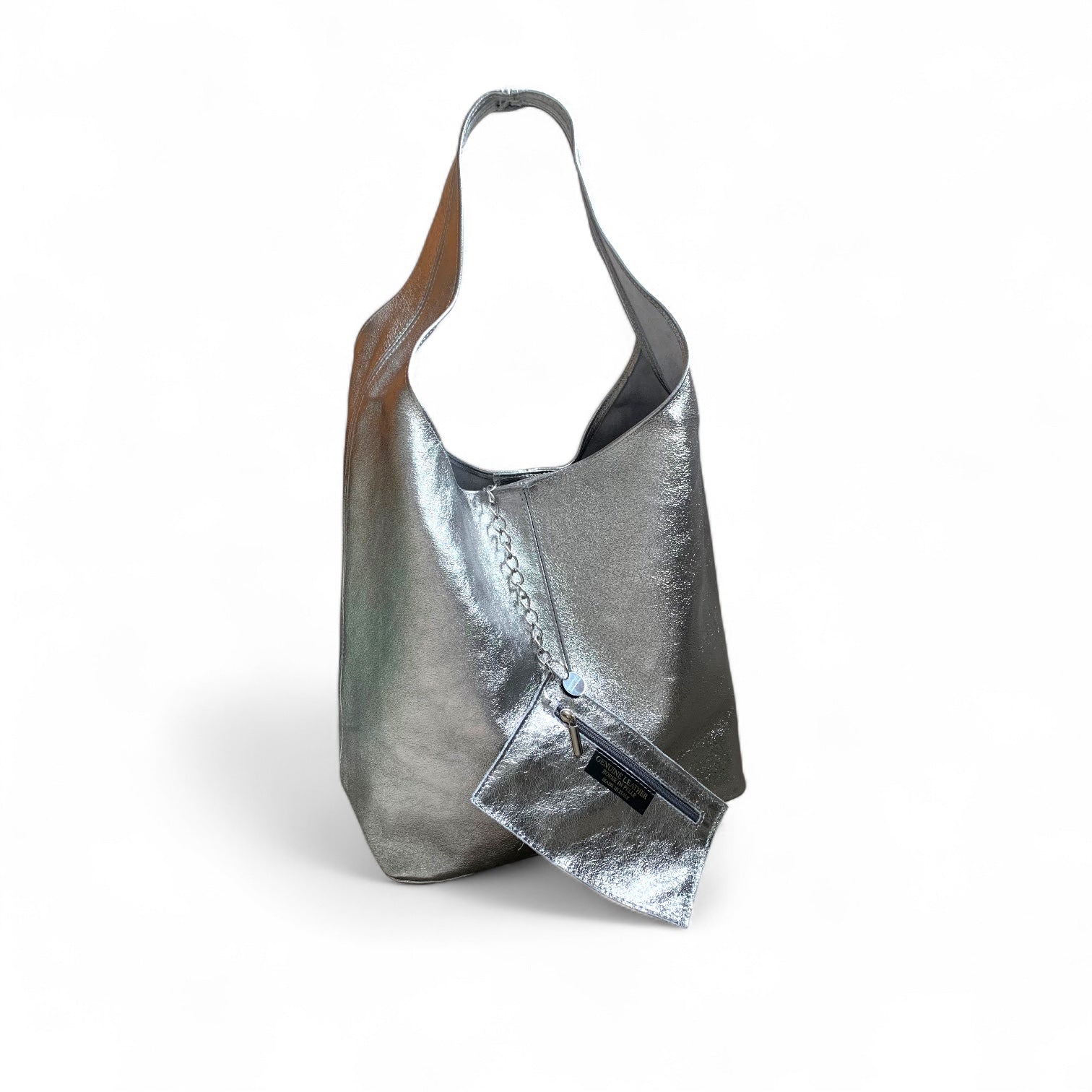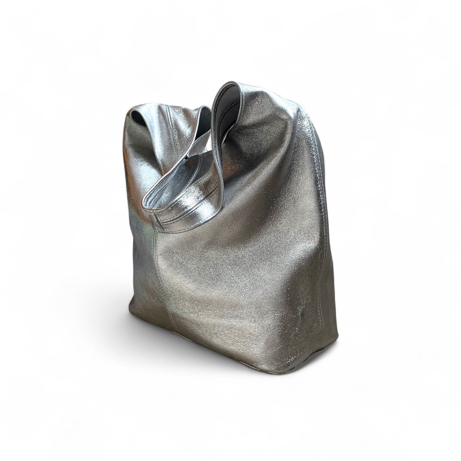 Elevate your look with this slouchy boho oversized bag, available in silver, gold, rose gold, and dark silver. Combining bohemian charm with a luxurious metallic finish, its spacious design offers both style and practicality. The rich tones and relaxed silhouette create an elegant accessory that adds sophistication and effortless glamour to any outfit.