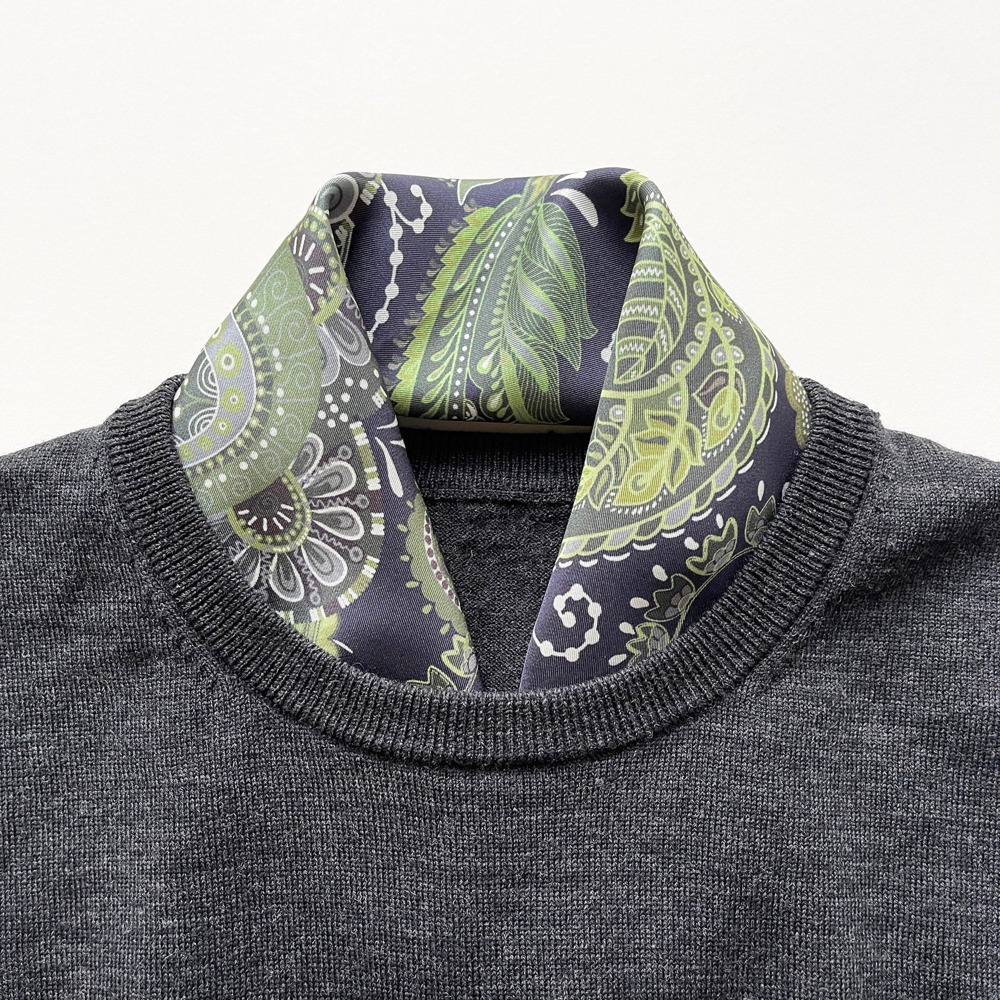 Add a touch of timeless elegance to your accessories collection with this unisex silk square scarf, featuring a luxurious hand-rolled edges. Measuring 53x53cm, this small silk scarf is crafted from 100% pure silk twill, making it the perfect blend of style and quality for both men and women. The intricate paisley pattern in rich tones of green and navy exudes sophistication, offering a versatile accessory for casual and formal looks alike.