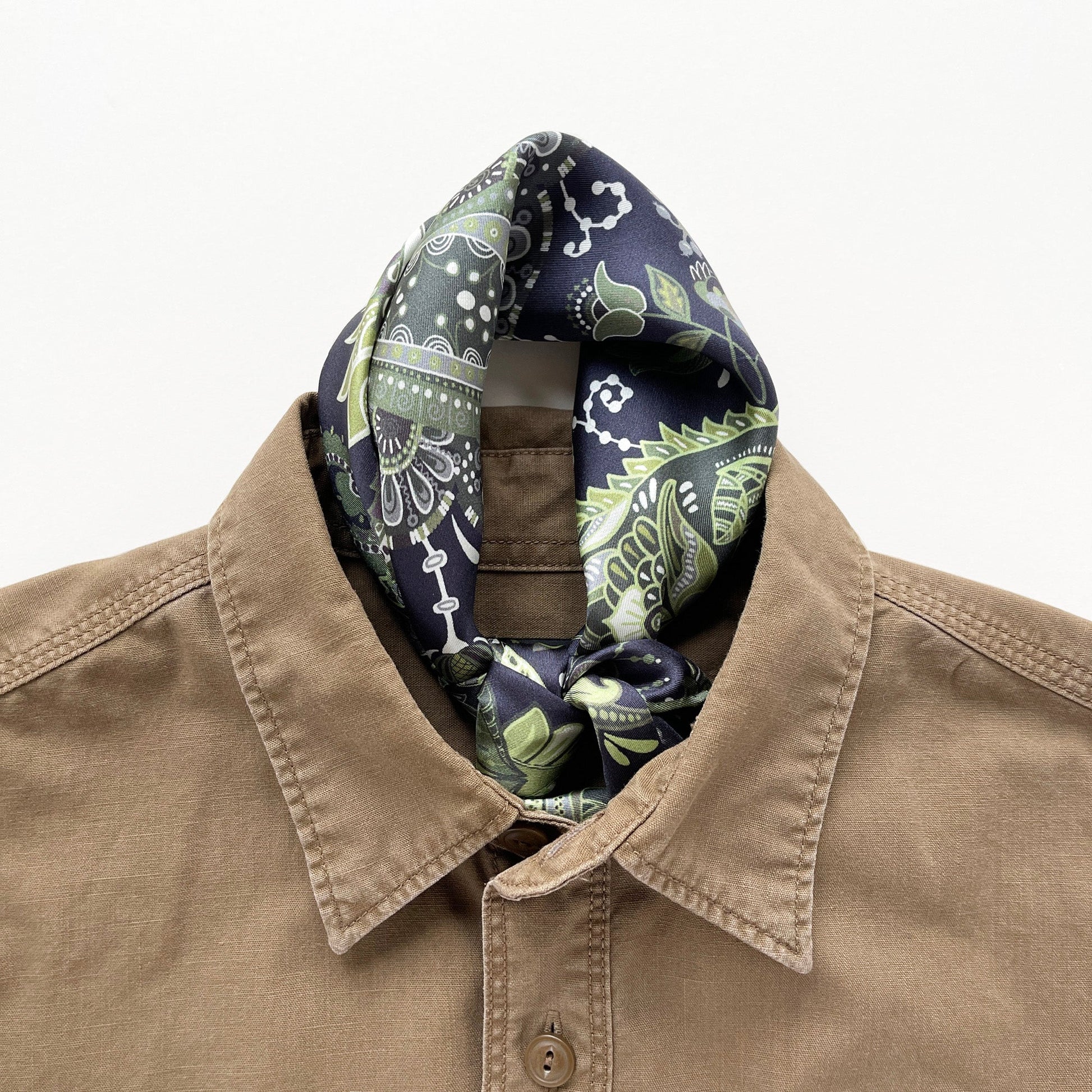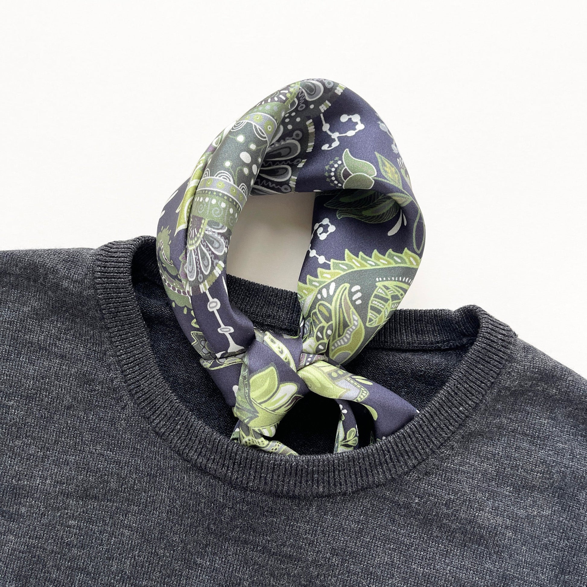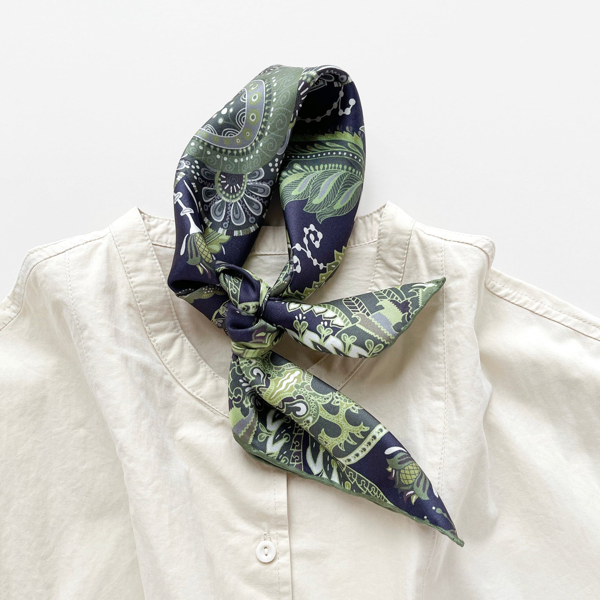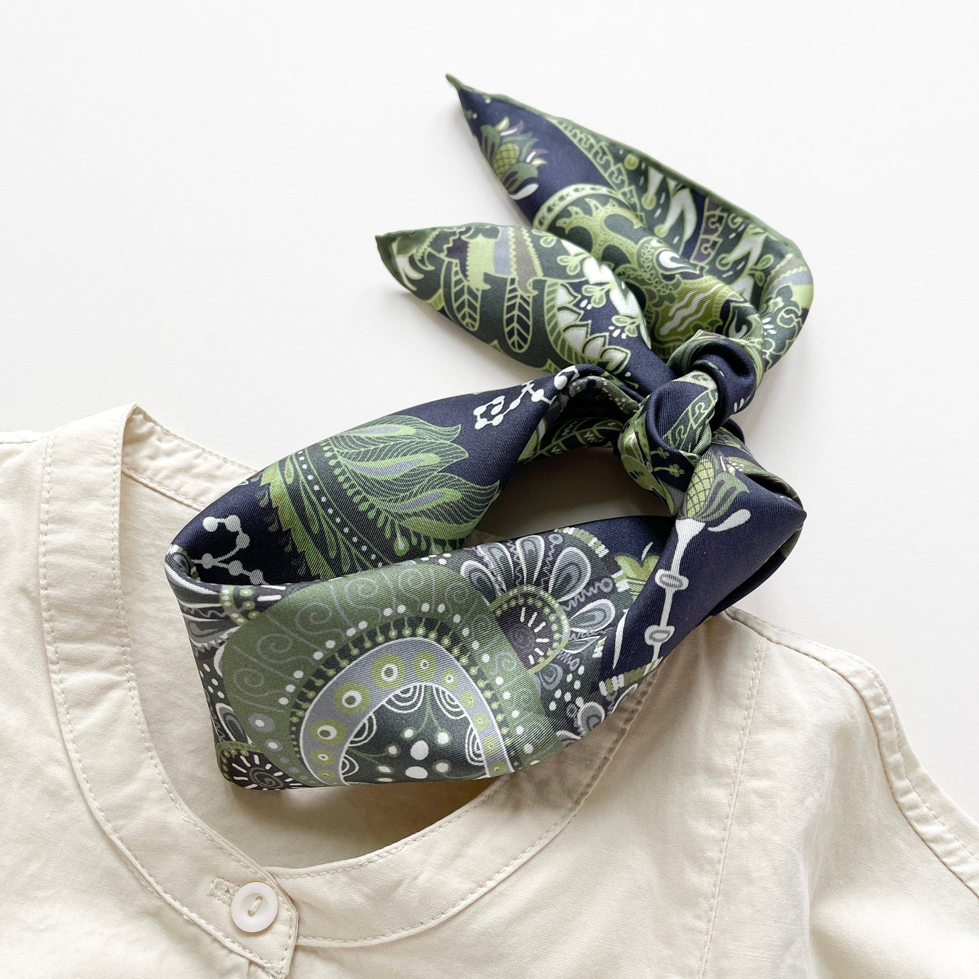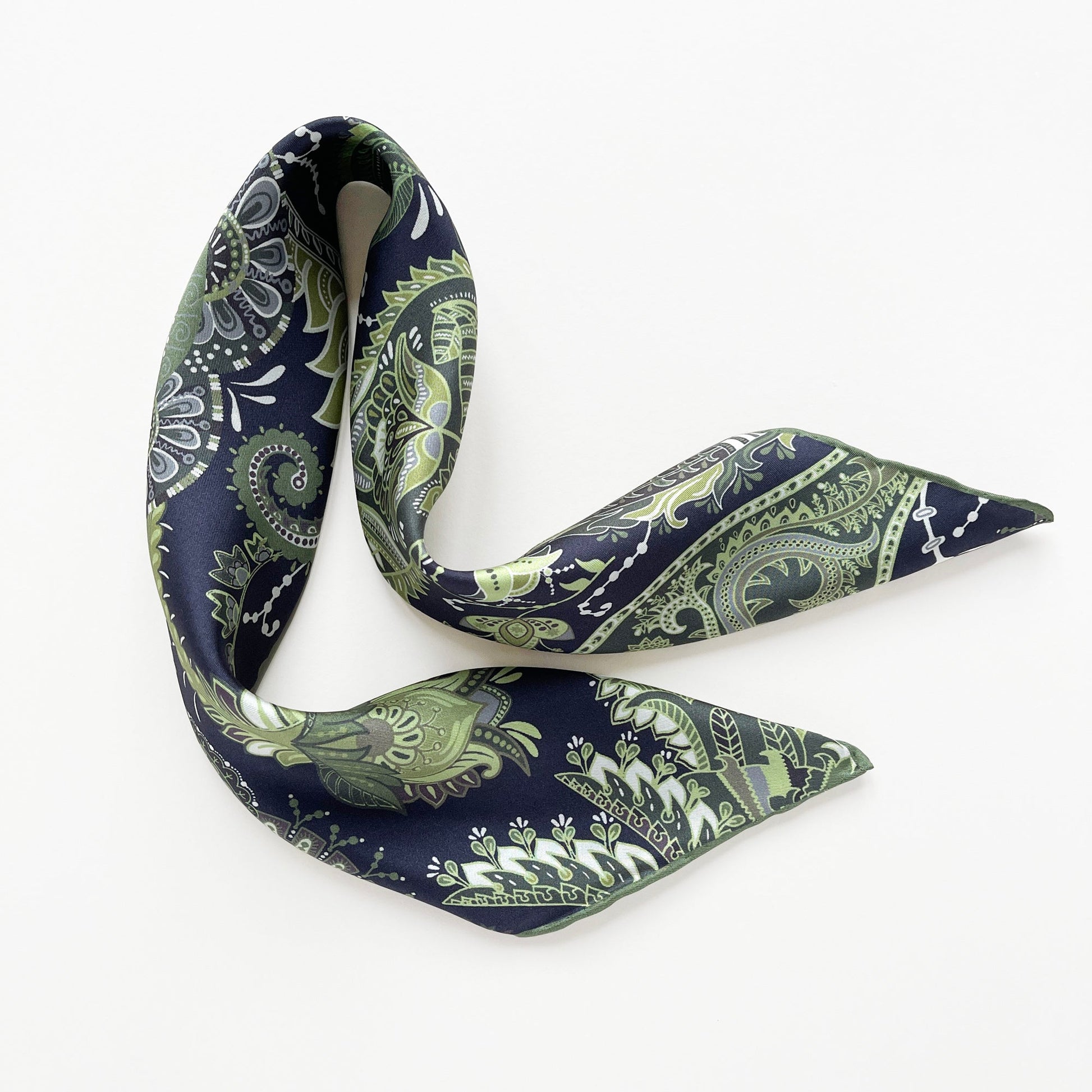 Forest Green Paisley Silk Scarf - 53cm Double-Sided Print Unisex Bandana with Hand-rolled Edges