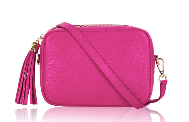 Fuchsia Leather Crossbody Bag With Tassel - Darcy