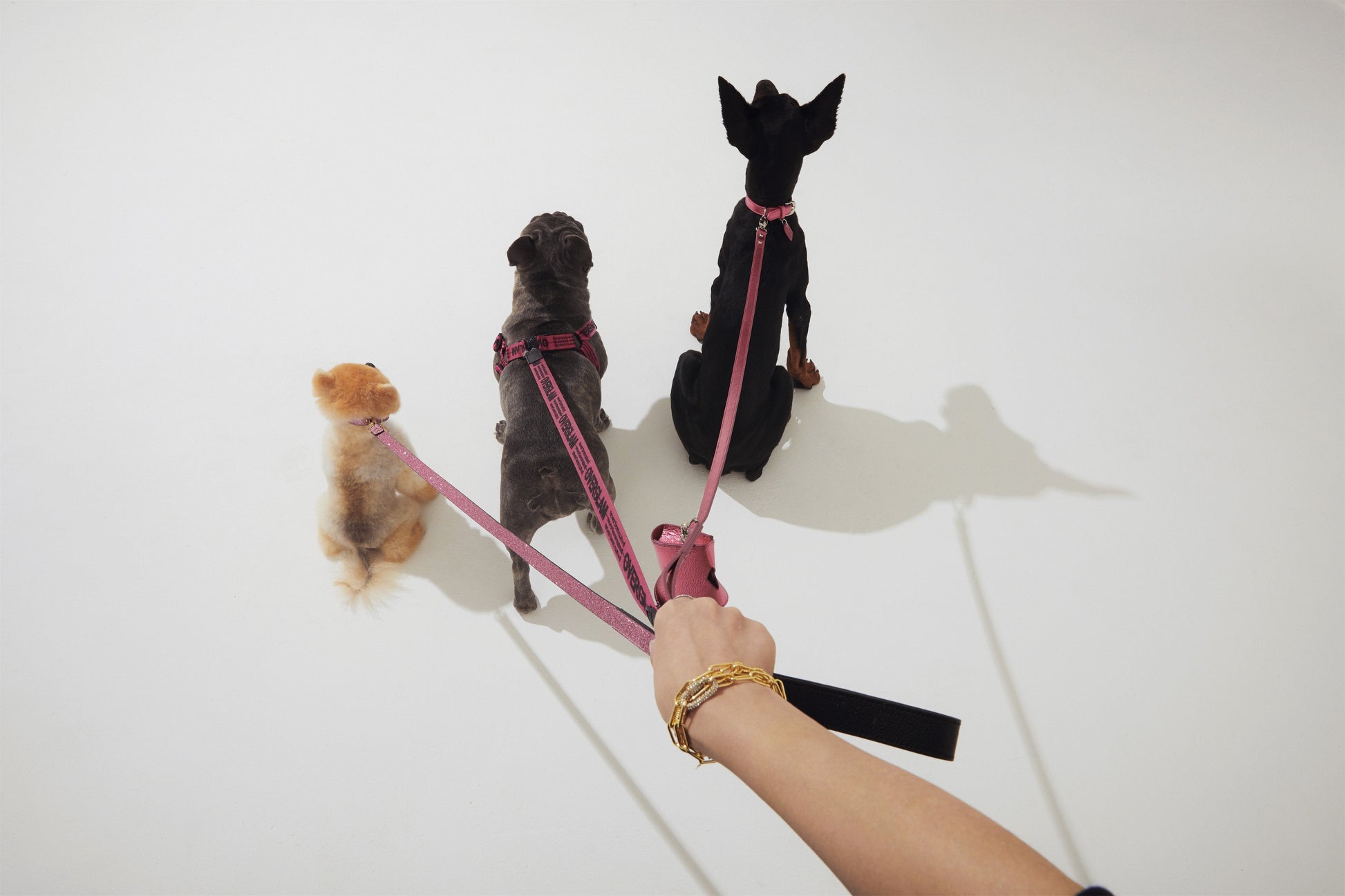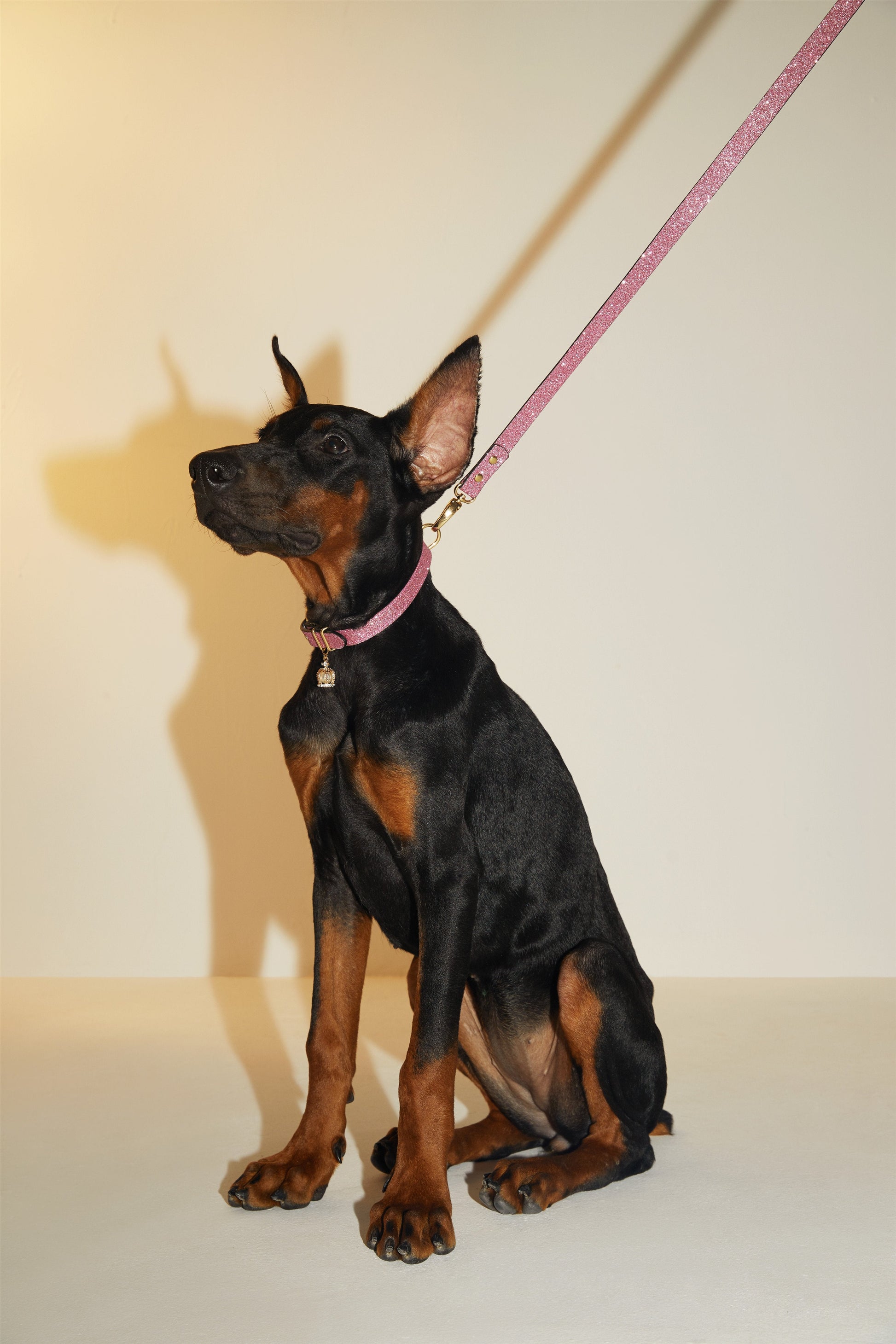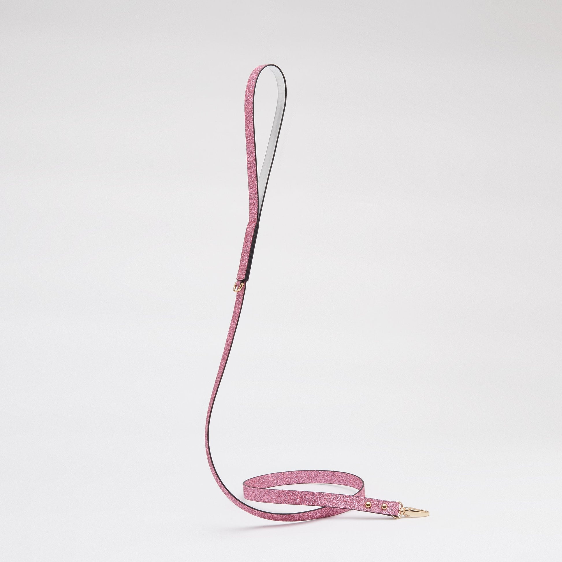 Glitter lead in shiny silver or studded rose.