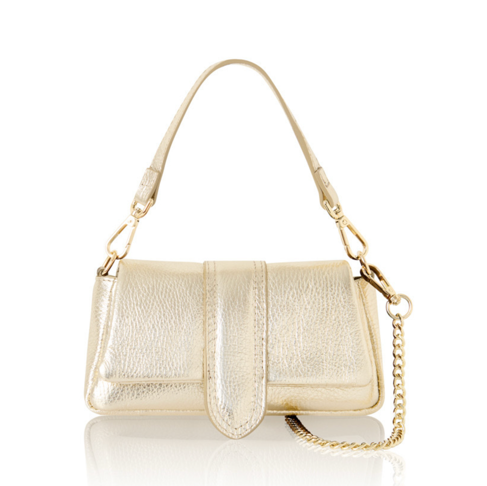 Gold Leather Occasion Bag With Chain Handle - Hilda