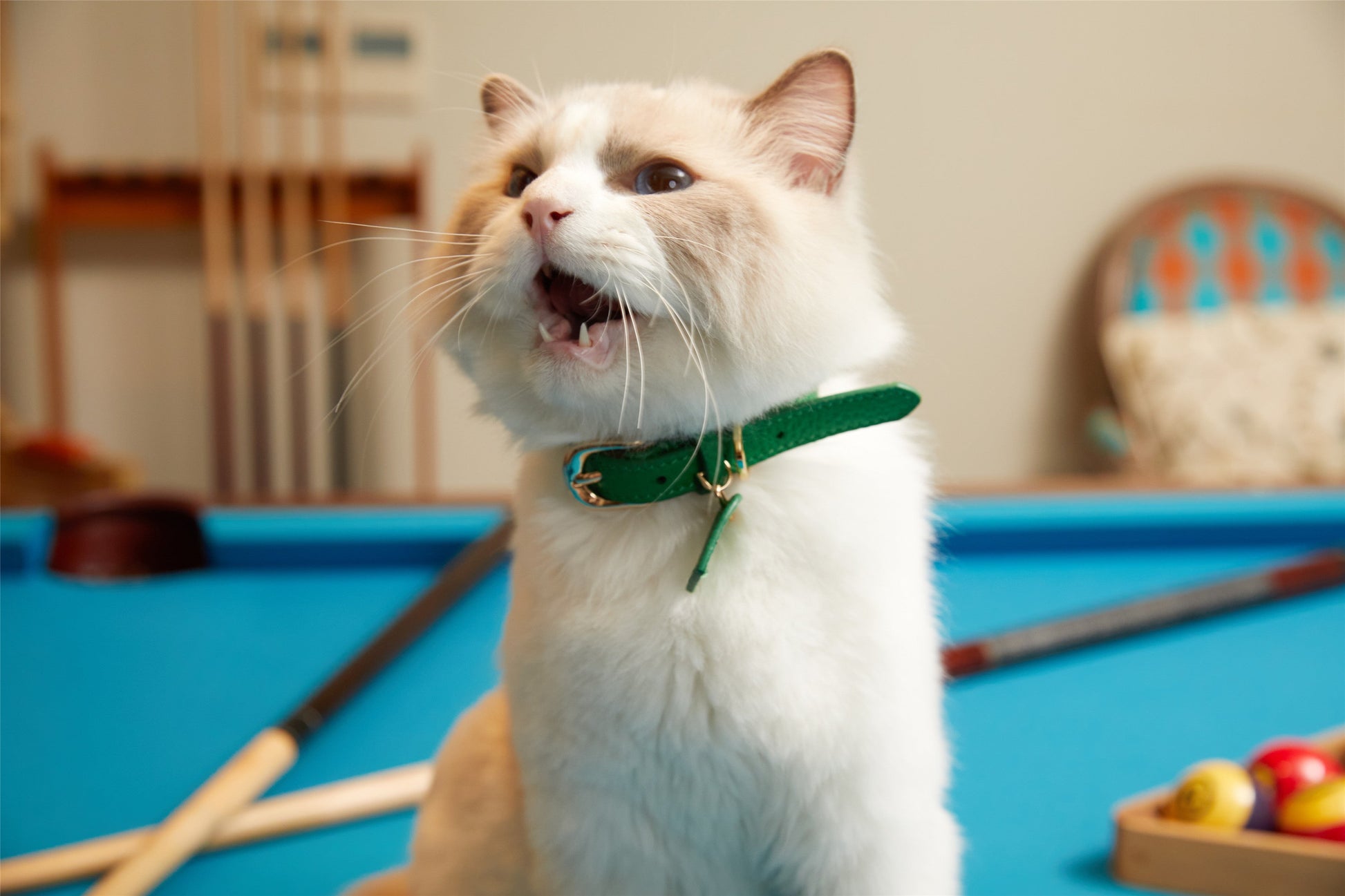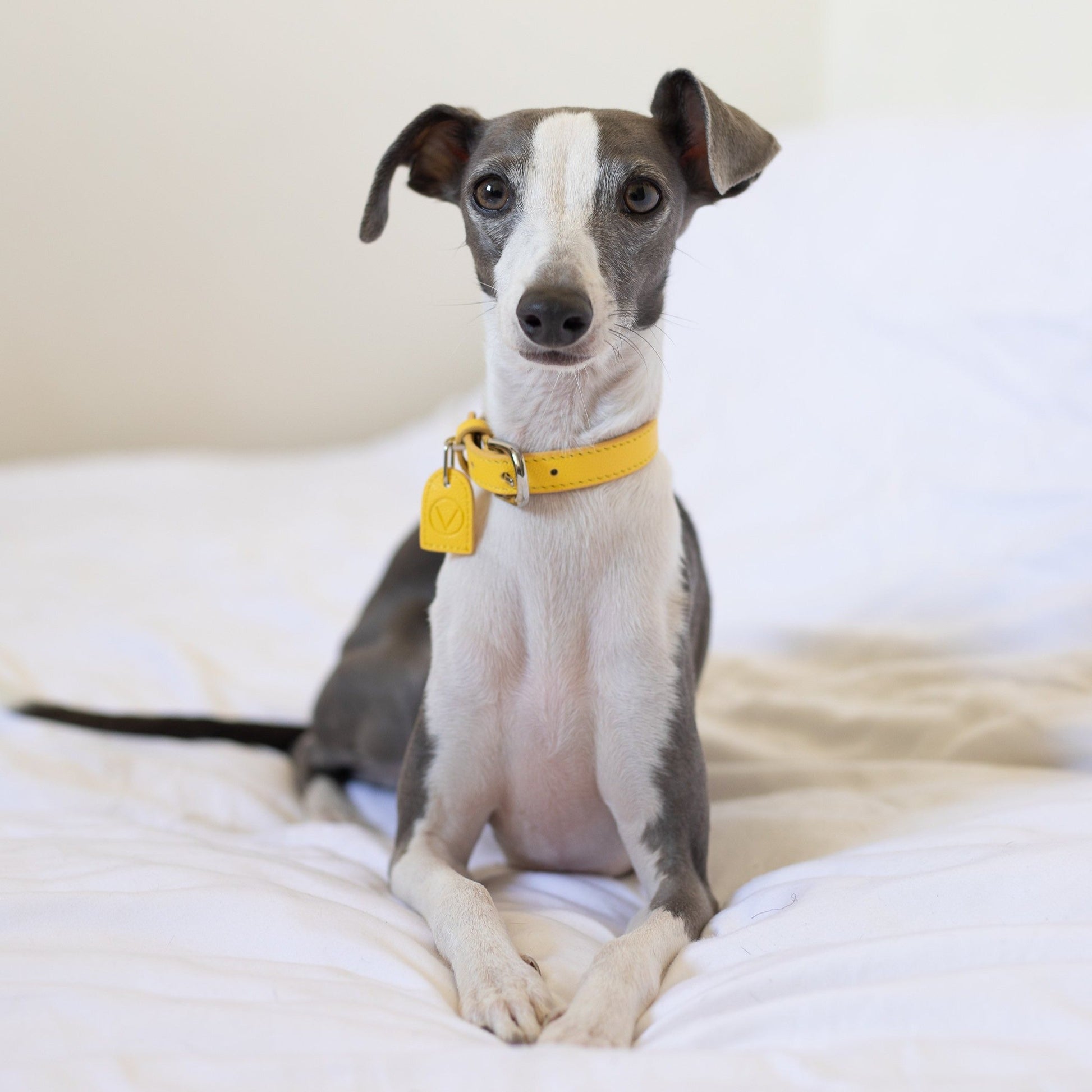 Our classic leather collar. Features golden and silver metals and the Over Glam tag. Available from XS to L. Comes in six colours.