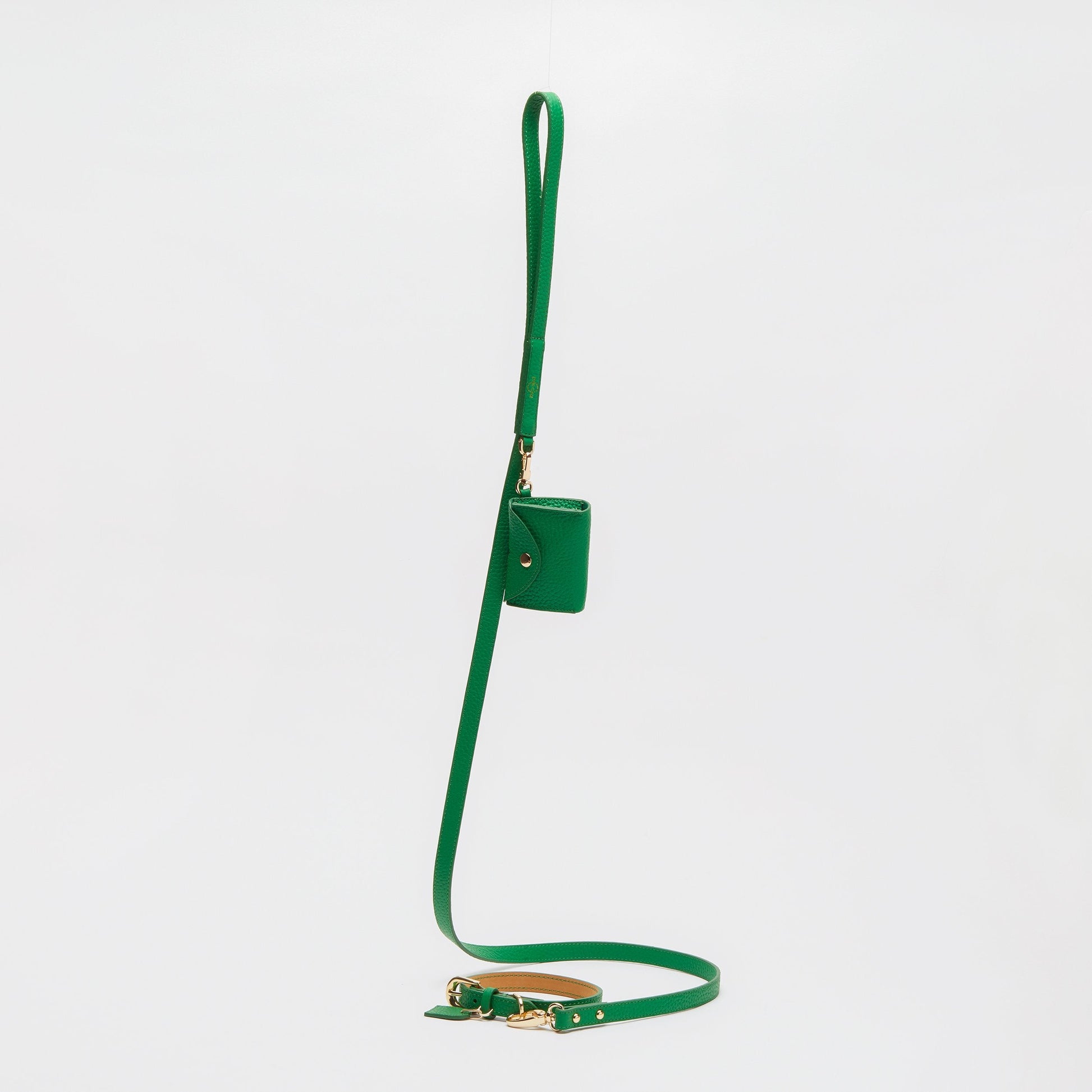 Our classic leather combo lead, collar and poo pocket holder Features in golden and silver metal finish. Comes in five colours.
