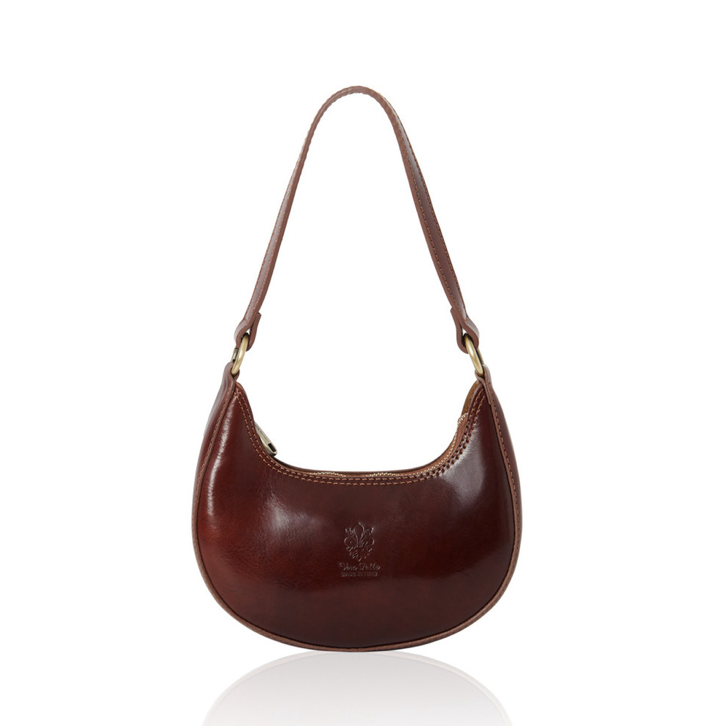 Light Chocolate Half Moon Leather Shoulder Bag - Bridget