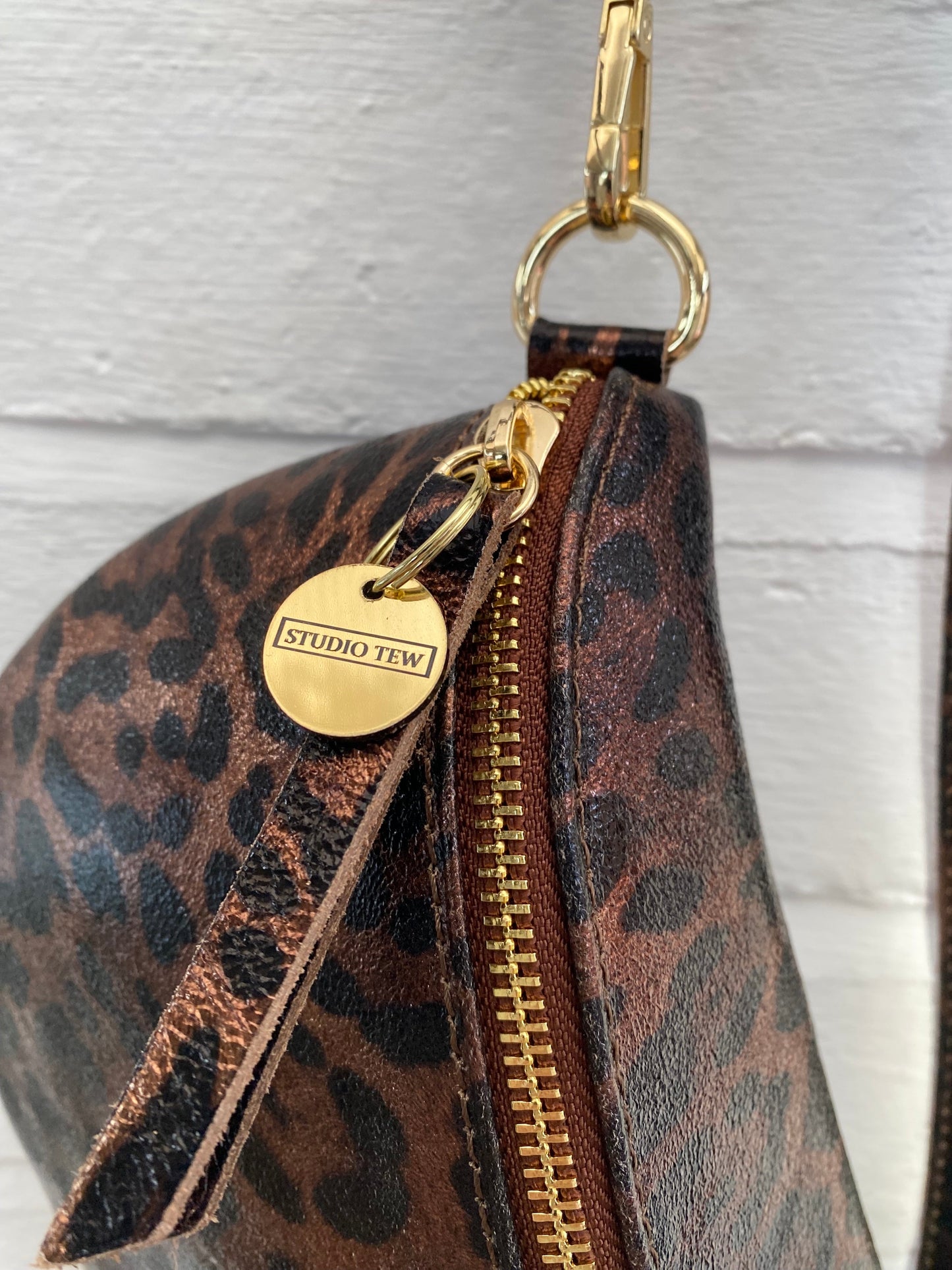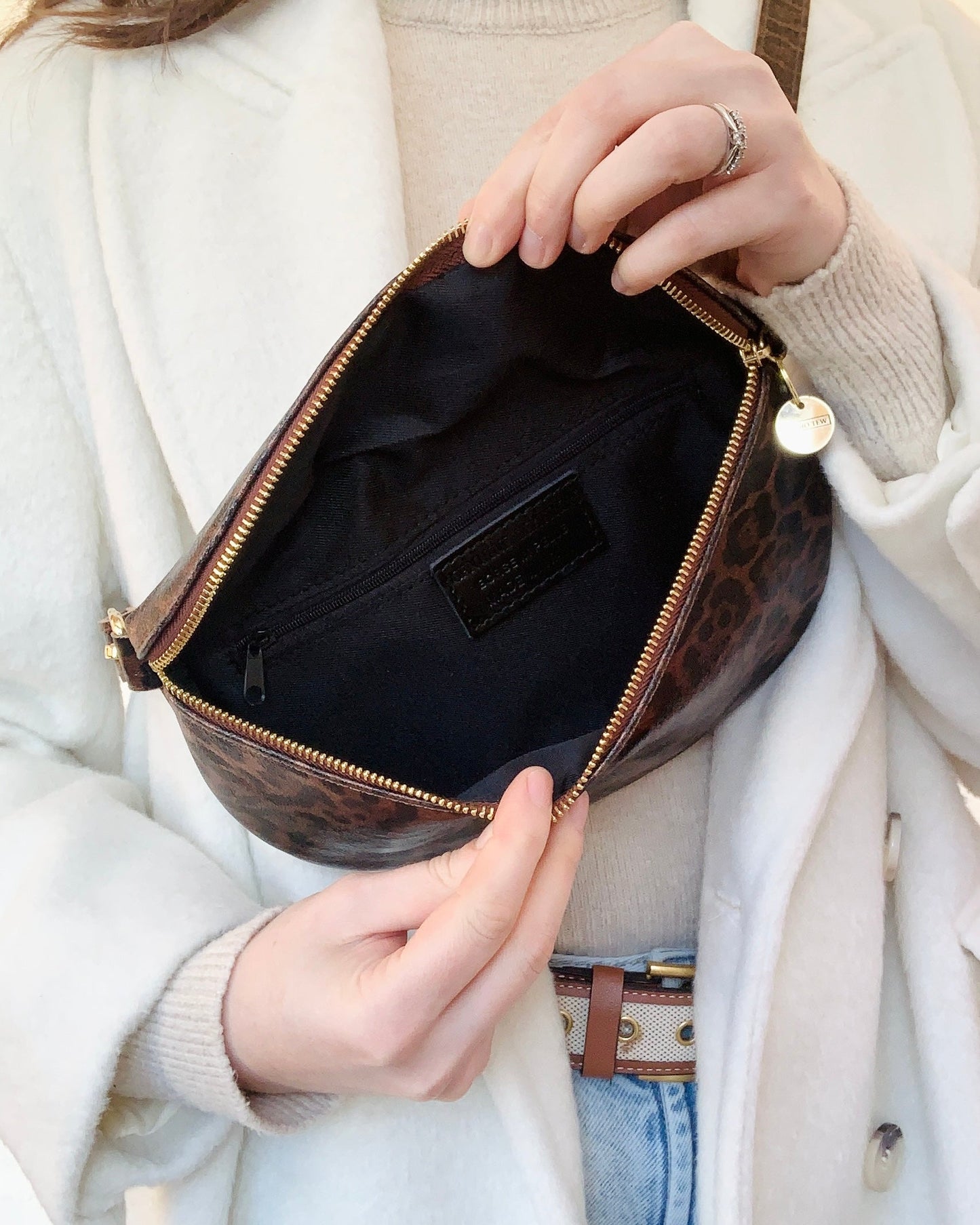 Dark Tan Leopard Print Leather Bum Bag - Zina
