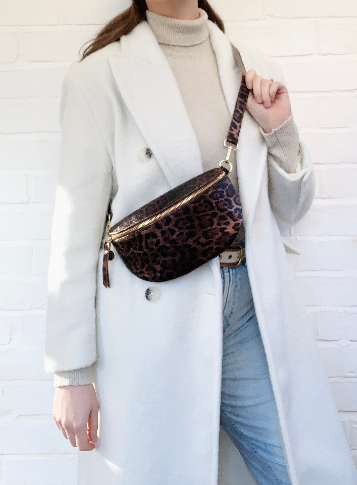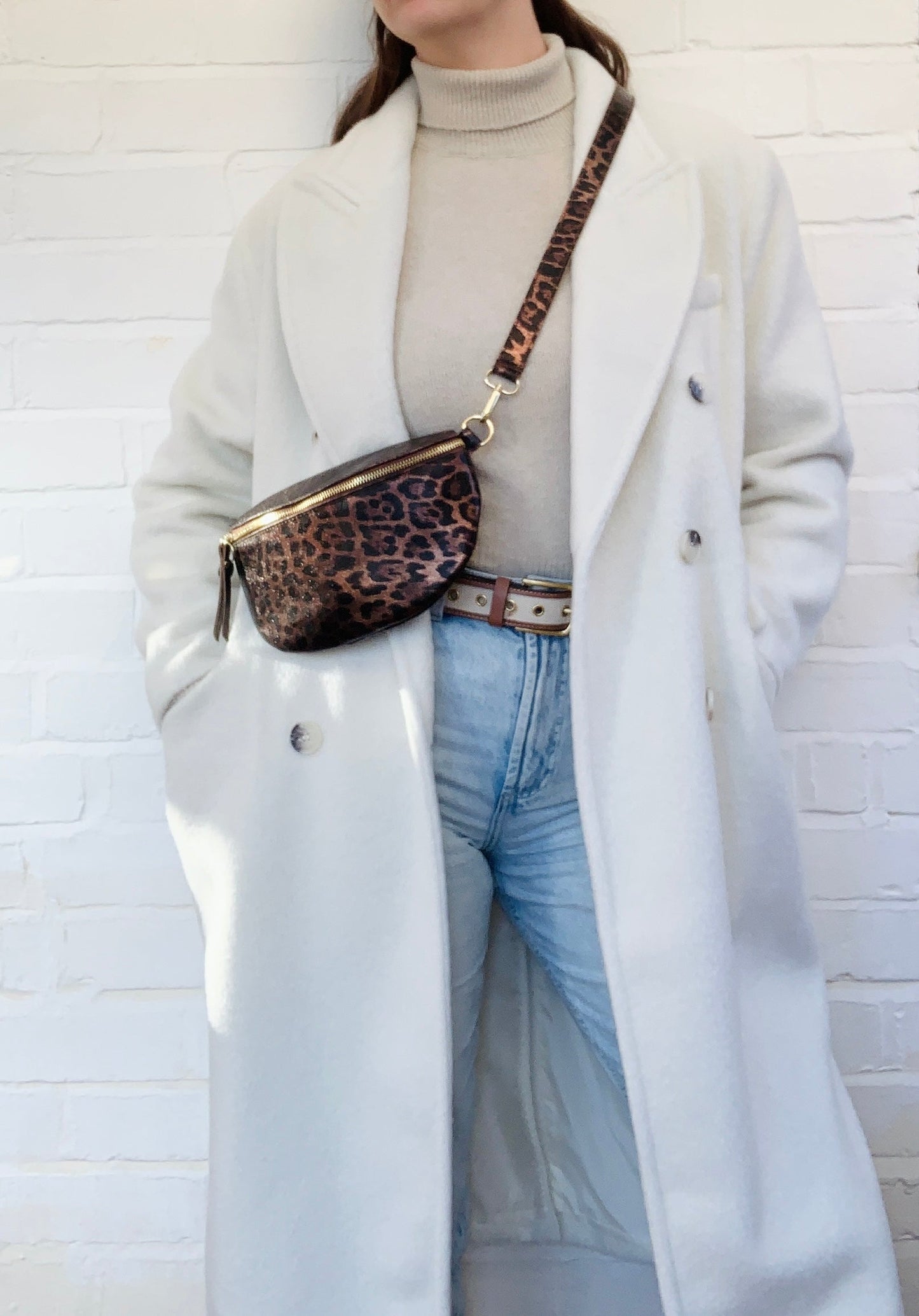This chic accessory keeps your essentials secure and within reach while adding a bold, fashionable statement to any outfit. Crafted from premium leather with a striking leopard print, it’s the perfect blend of practicality and trendiness.