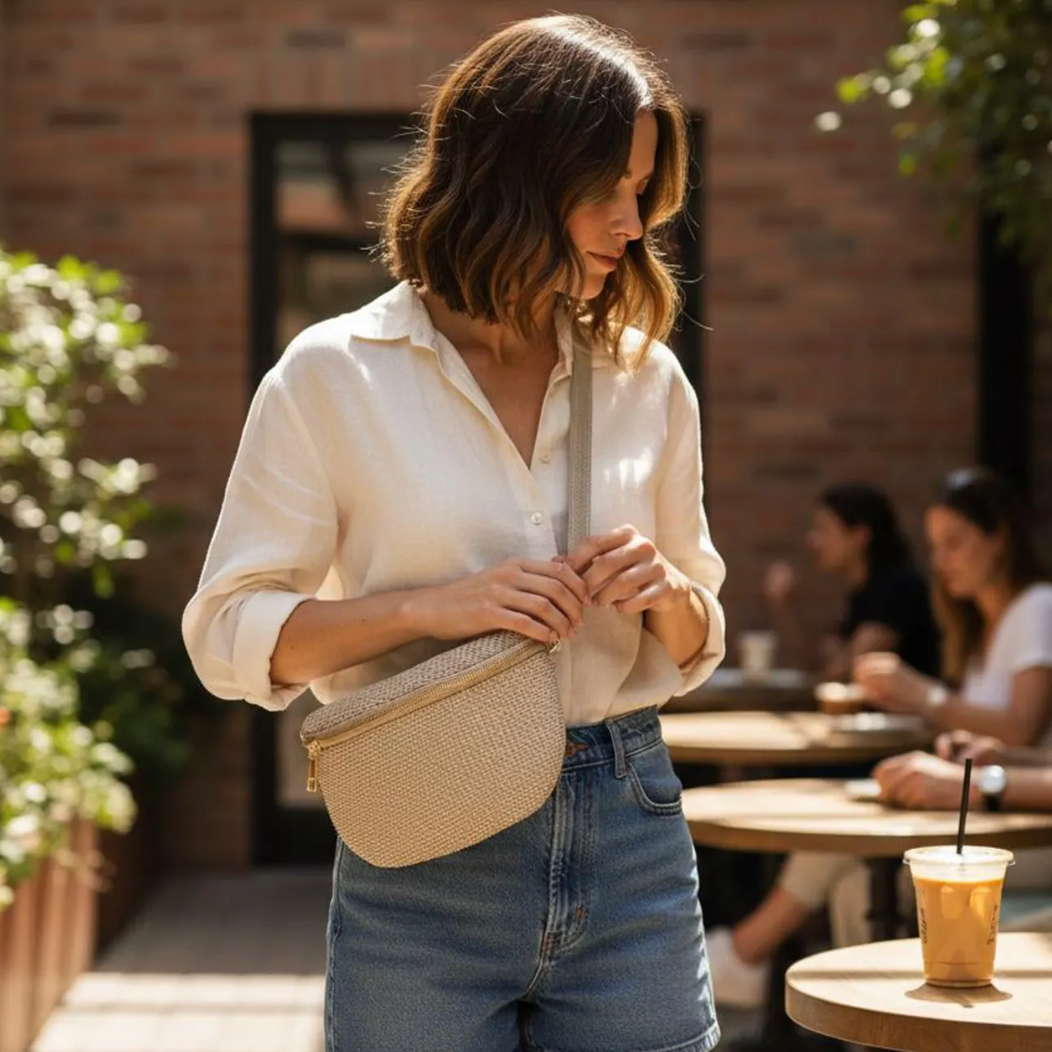 Get ready to make a statement this season with our must-have raffia bum bag! Available in a variety of vibrant colors and featuring a stylish leather strap, this bag is the perfect accessory for any beach vacation or summer outing. Don't miss out on this holiday essential!