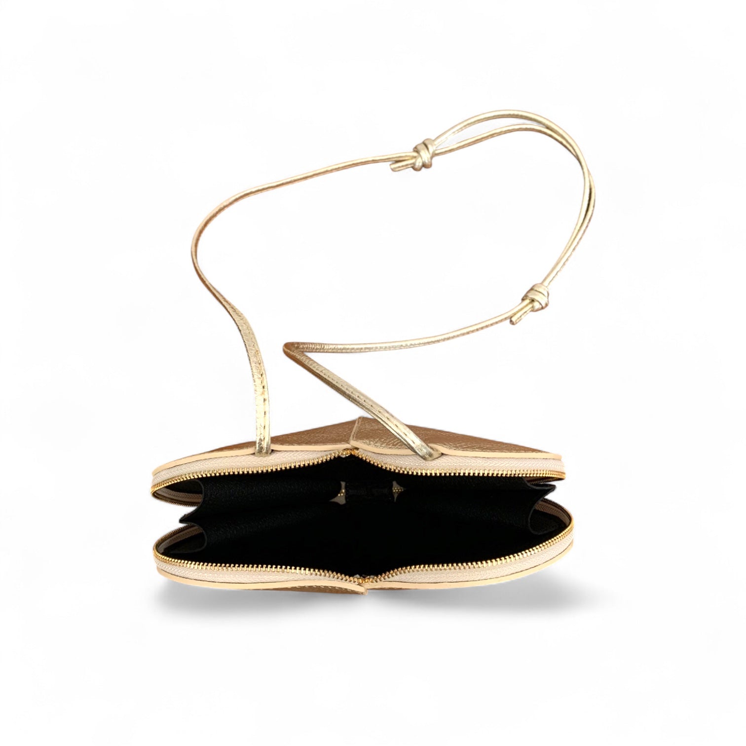 This heart-shaped leather bag features a convenient zip fastening and glams up any outfit. Get ready to turn heads as you stand out from the crowd with this unique and playful accessory. Love is in the air (and on your arm) with the love heart leather bag - Amour.
