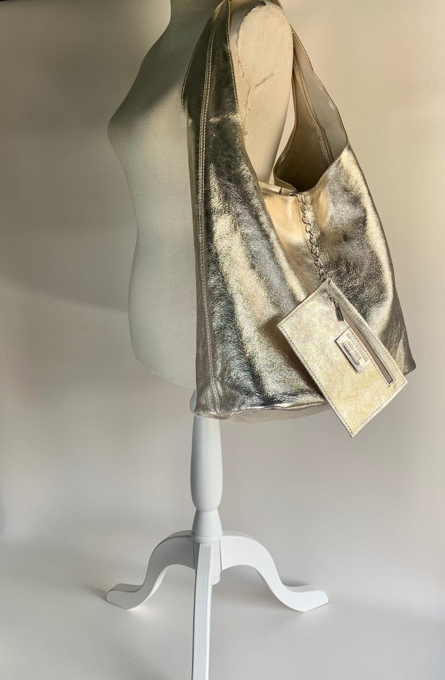 Elevate your look with this slouchy boho oversized bag, available in silver, gold, rose gold, and dark silver. Combining bohemian charm with a luxurious metallic finish, its spacious design offers both style and practicality. The rich tones and relaxed silhouette create an elegant accessory that adds sophistication and effortless glamour to any outfit.