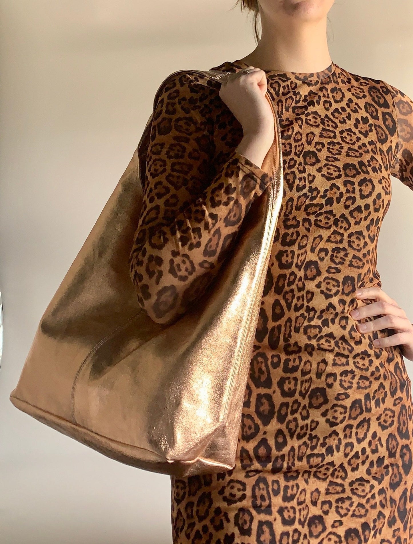 Elevate your look with this slouchy boho oversized bag, available in silver, gold, rose gold, and dark silver. Combining bohemian charm with a luxurious metallic finish, its spacious design offers both style and practicality. The rich tones and relaxed silhouette create an elegant accessory that adds sophistication and effortless glamour to any outfit.
