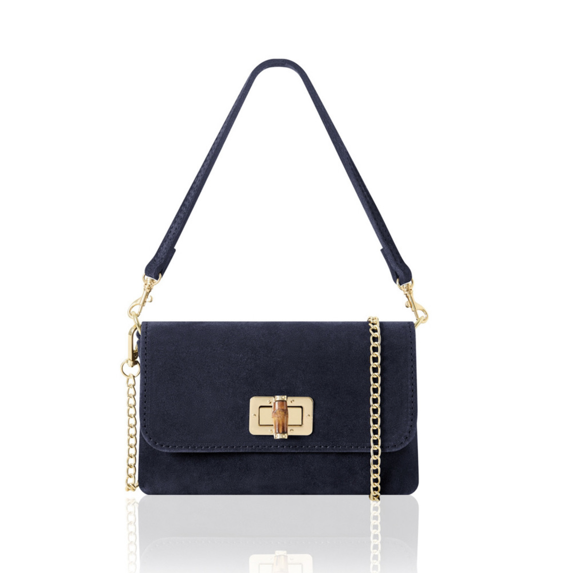 Navy Blue Twist Lock Suede Evening Bag - Camilla