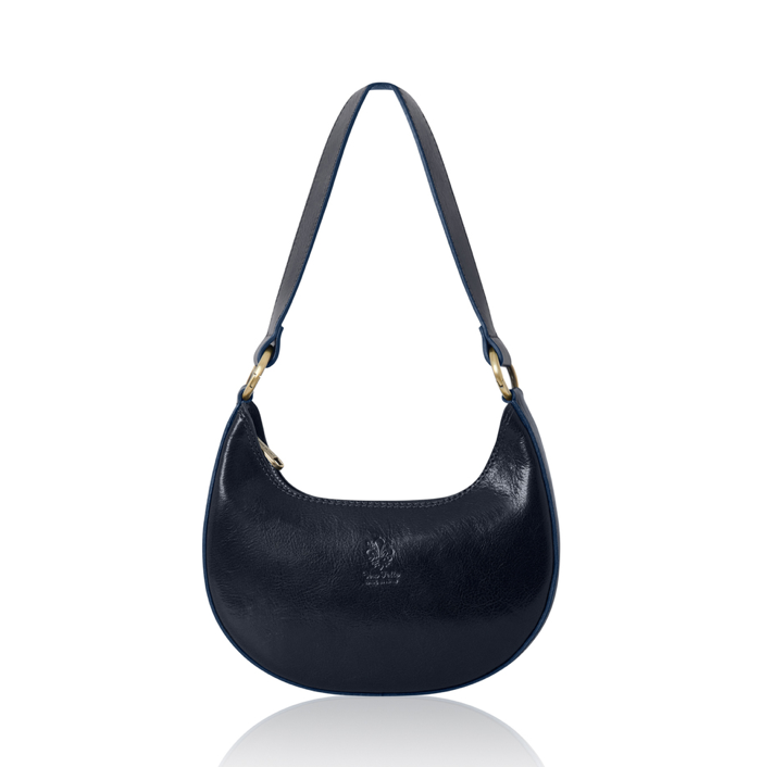 Navy Half Moon Leather Shoulder Bag - Bridget