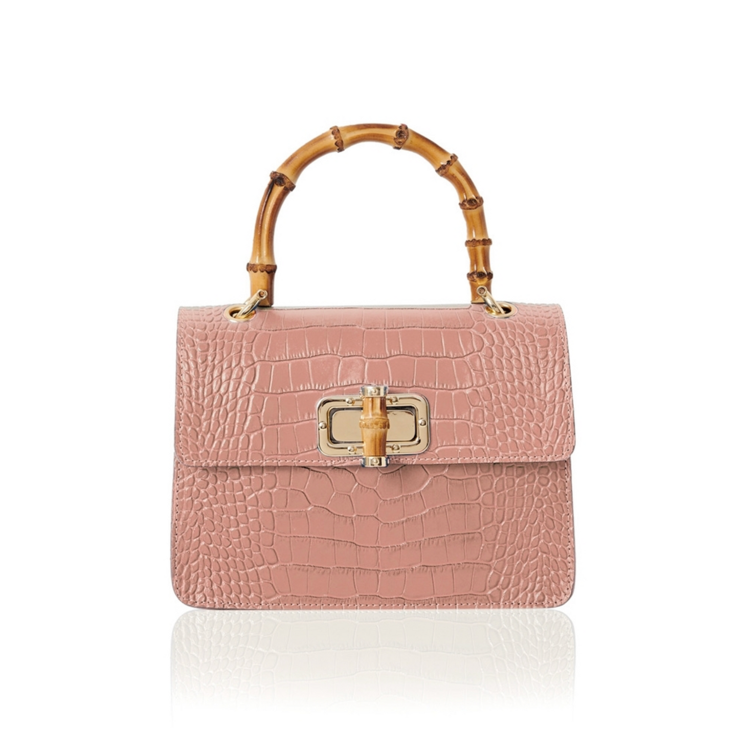Pink Leather Crocodile Print Bag With Twist Lock - Genevieve