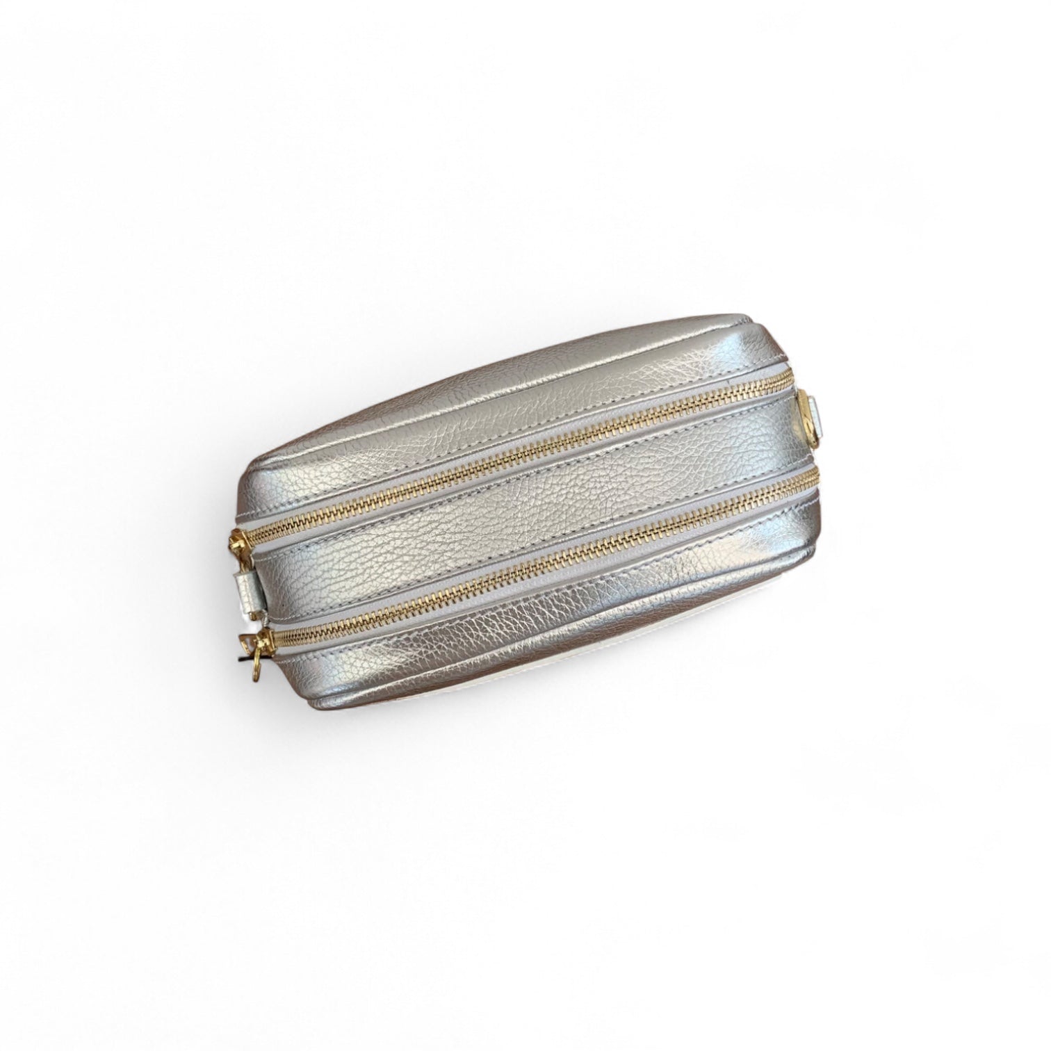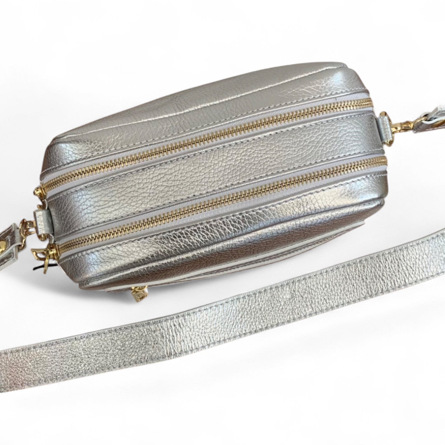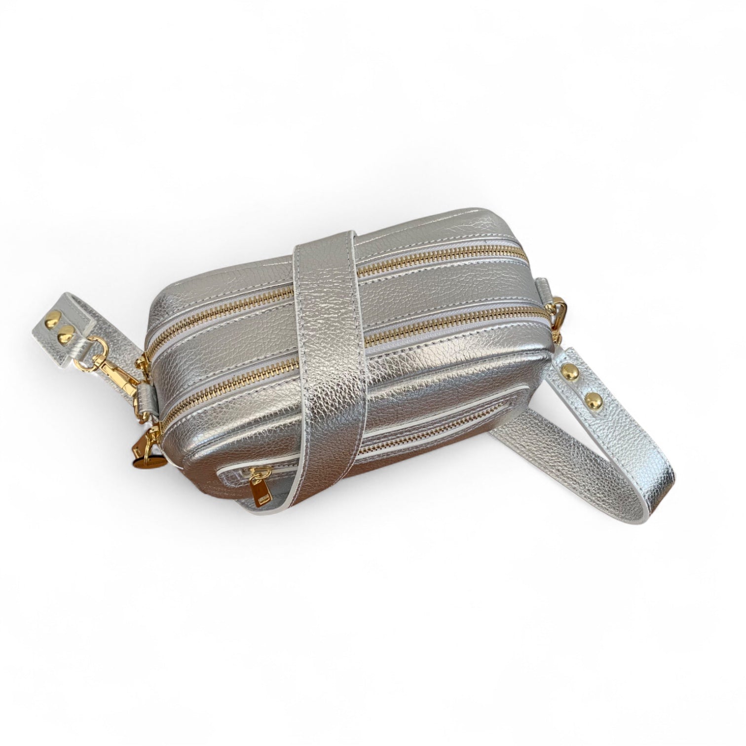 Gold metal hardware.