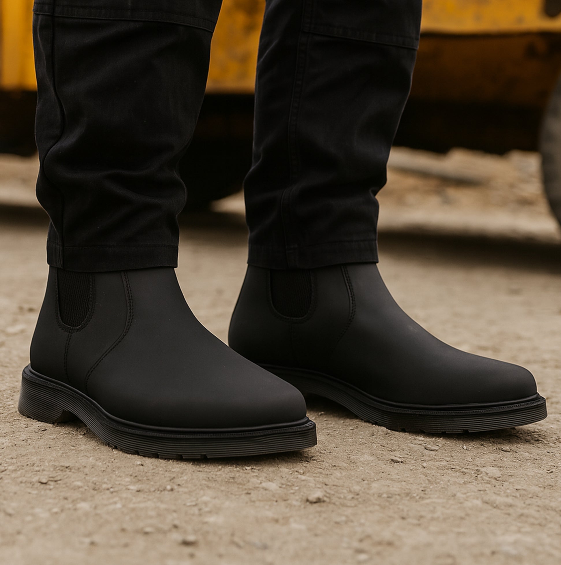 STB ELLIS Unisex Leather Air Cushioned Dealer Boots Waxy Black