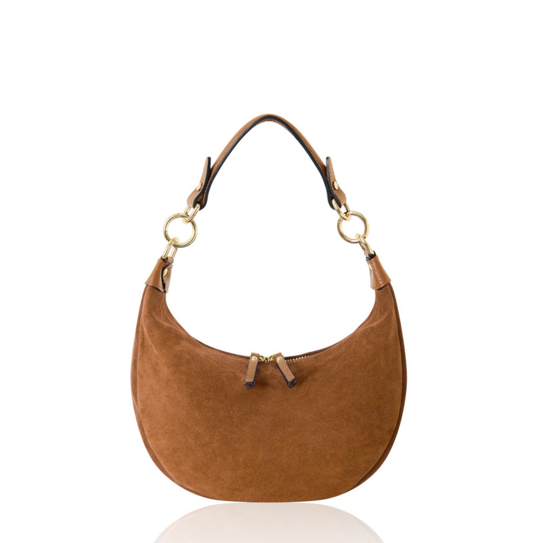 Tan Suede Crescent Shaped Hobo Bag - Valerie